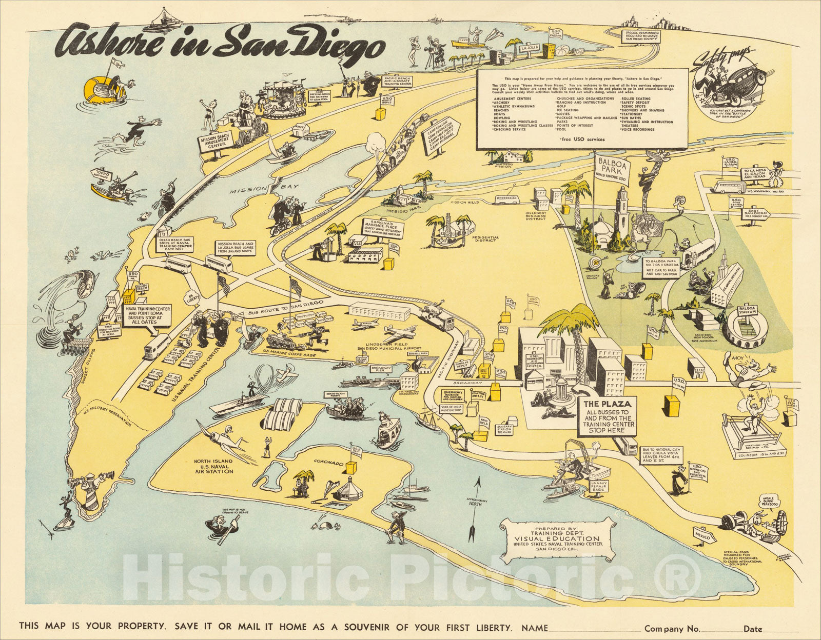 Historic Map : Ashore in San Diego., 1943, United States Naval Training Center, v2, Vintage Wall Art