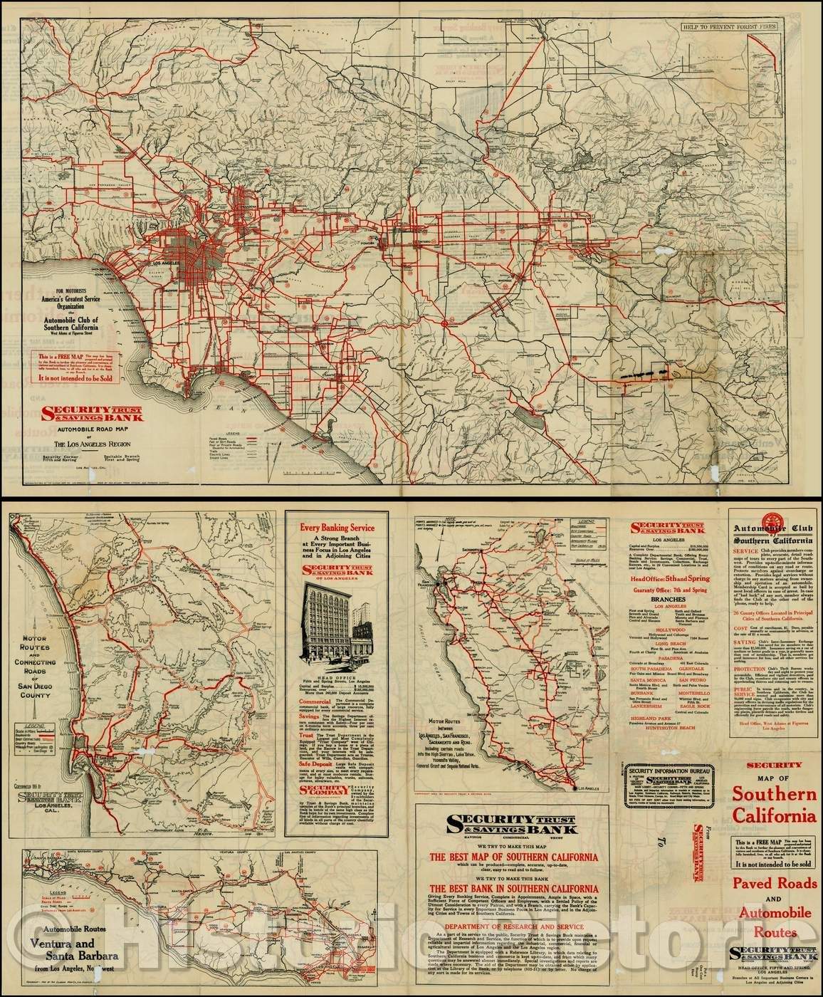 Historic Map - Automobile Map of The Los Angeles Region (with smaller maps of San Diego County and Santa Barbara Areas), 1923, George Clason - Vintage Wall Art