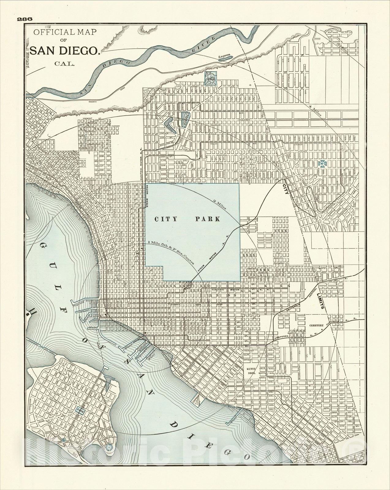 • .Historic Map : Official Map of San Diego. Cal., 1893, George F. Cram, Vintage Wall Art