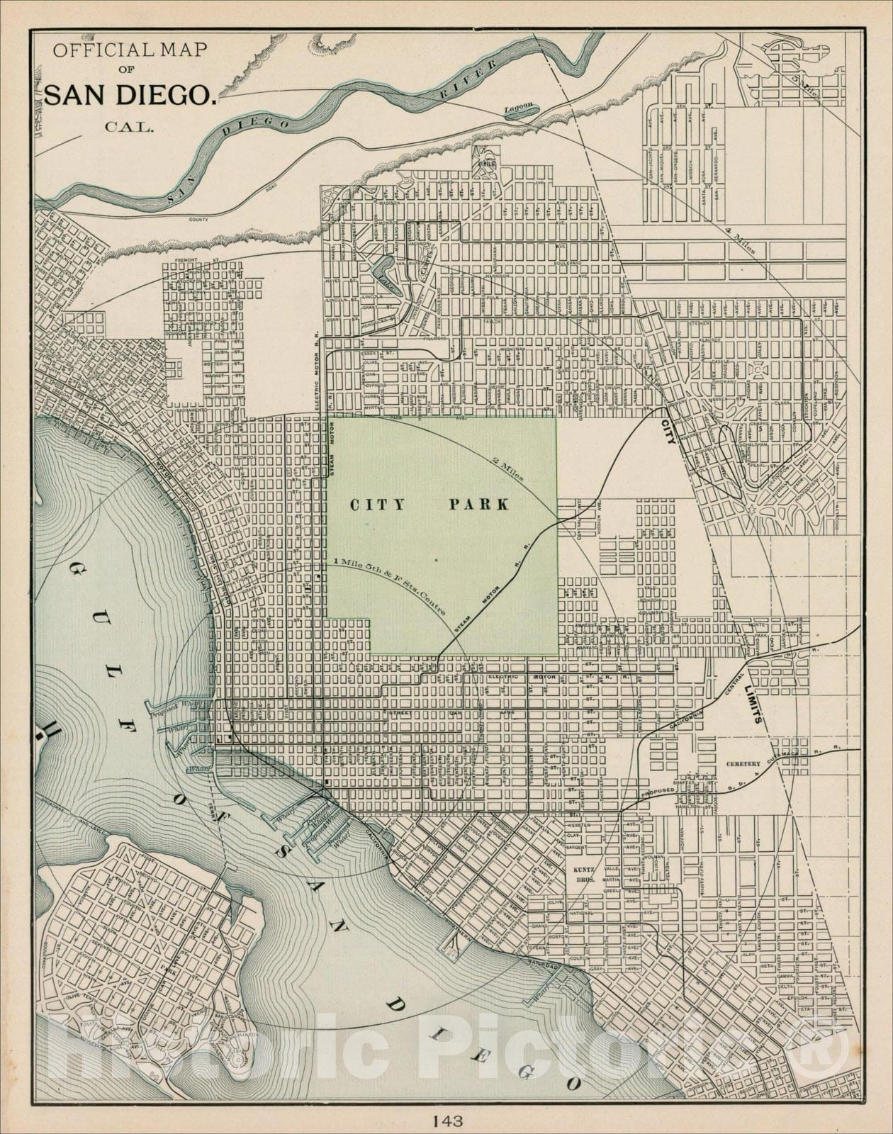Historic Map : Official Map of San Diego. Cal., 1899, George F. Cram, Vintage Wall Art