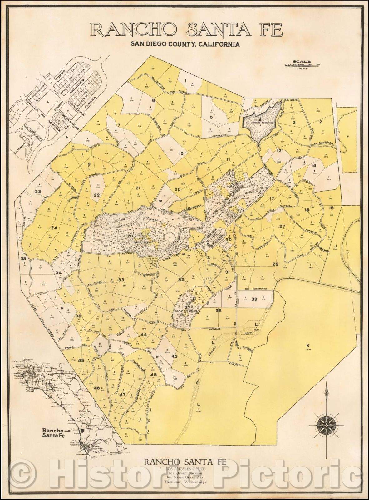 Historic Map - Rancho Santa Fe San Diego County, California, 1929, - Vintage Wall Art