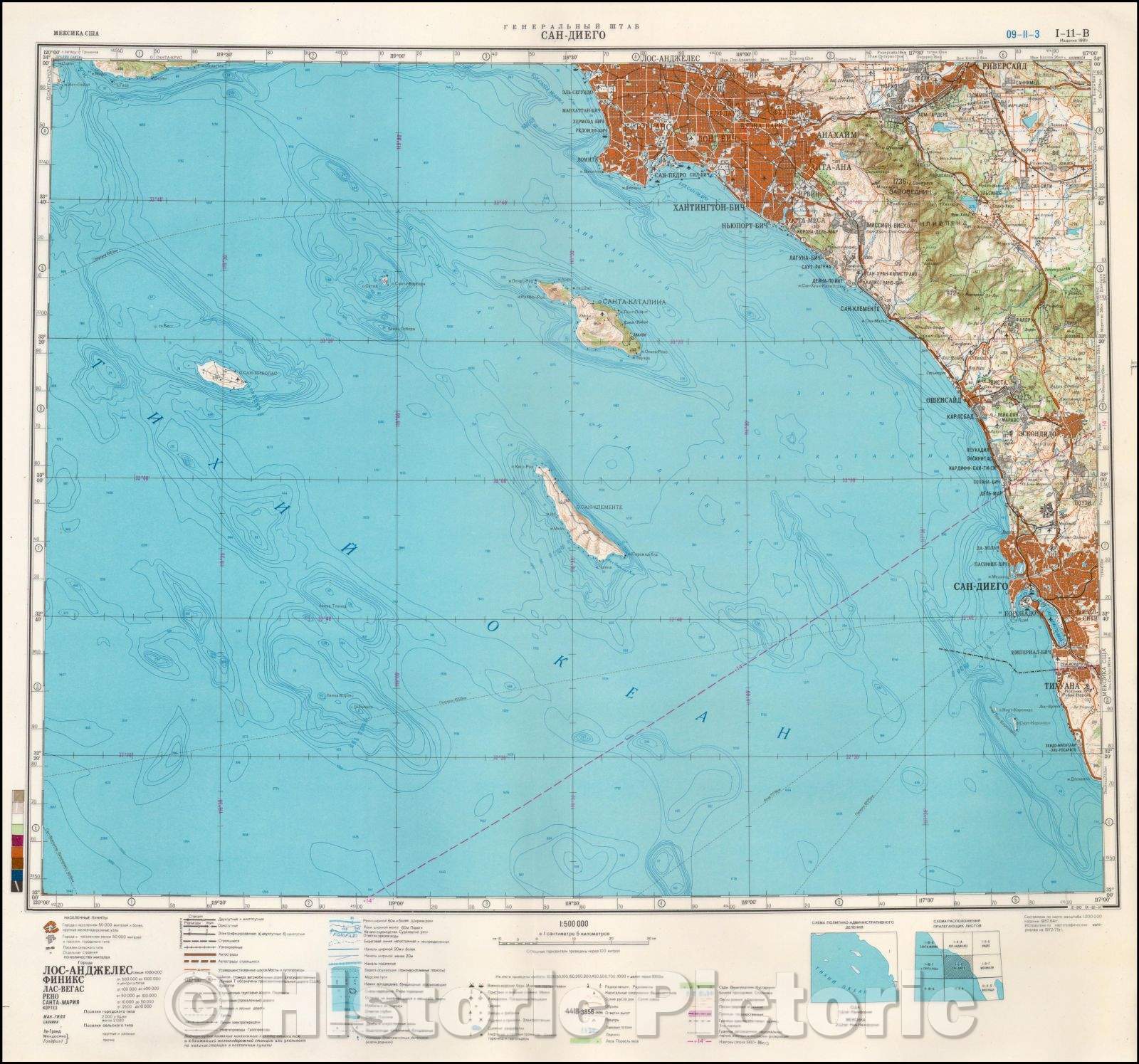 Historic Map - Russian Topographical of of Southern California, Los Angeles, Orange County and San Diego: 'General Staff San Diego'. Generalnyi Shtab San D, 1981 v2