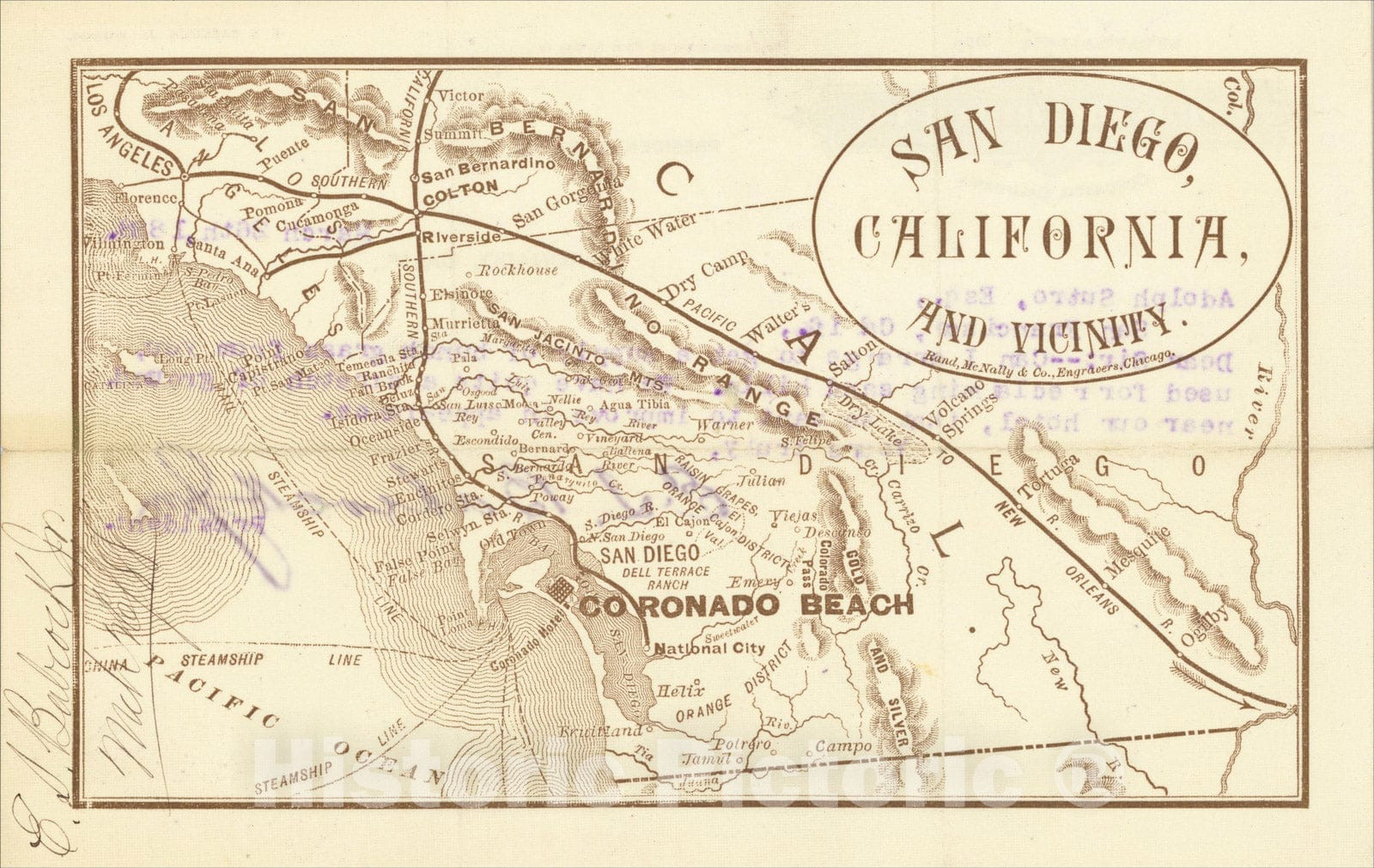 Historic Map : San Diego, California, and Vicinity [Letter from E. S. Babcock to Adolph Sutro], 1888, Rand McNally & Company, Vintage Wall Art