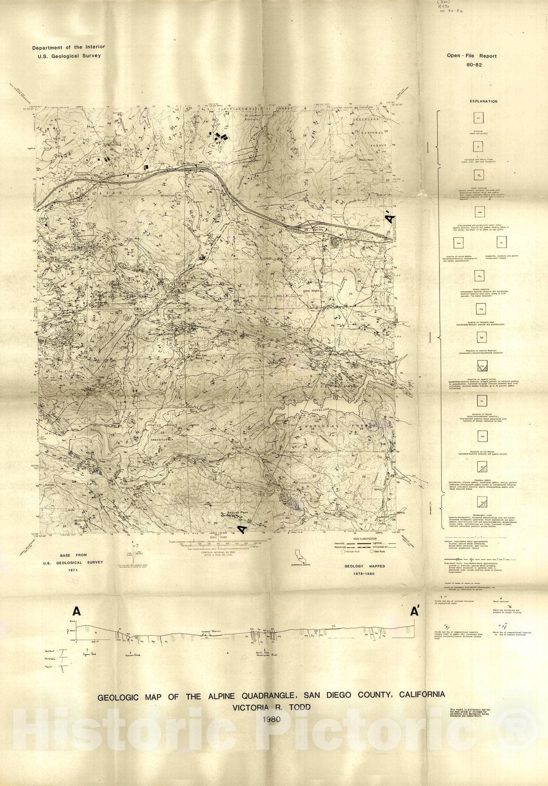 Map : Geologic map of the Alpine quadrangle, San Diego County, California, 1980 Cartography Wall Art :