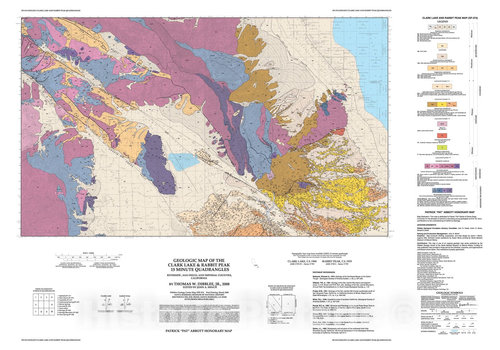 • Map : Geologic map of the Clark Lake & Rabbit Peak fifteen minute quadrangles, Riverside, San Diego, and Imperial Counties, California, 2008 Cartography Wall Art :