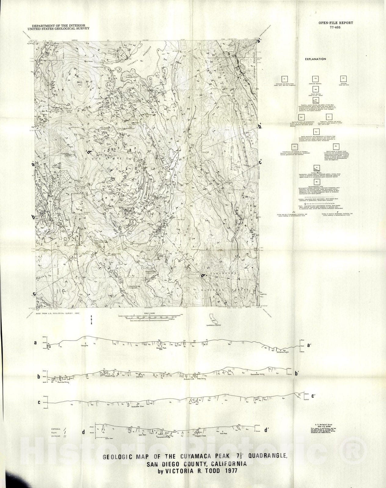 Map : Geologic map of the Cuyamaca Peak 7.5' quadrangle, San Diego County, California, 1977 Cartography Wall Art :