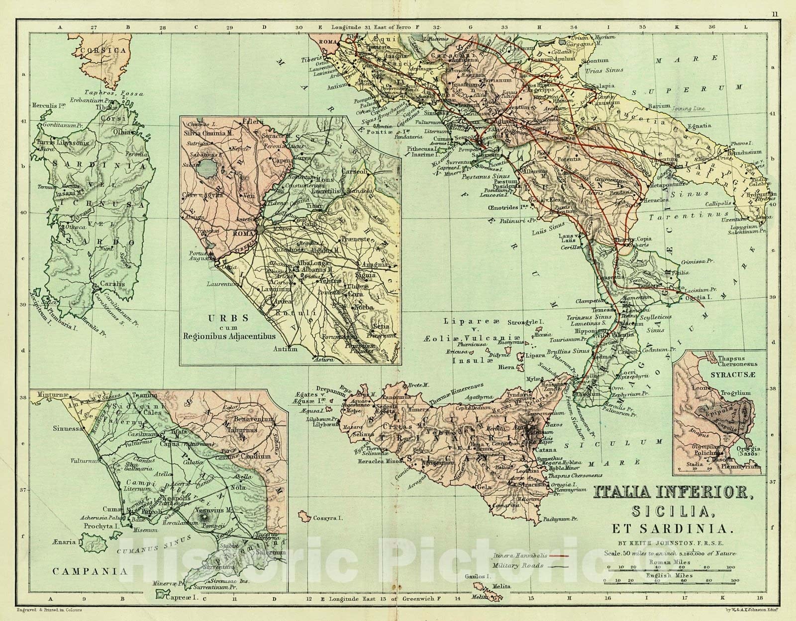 Vintage Map | 1886 Italia Inferior, Sicilia, et Sardinia | Johnston, Keith