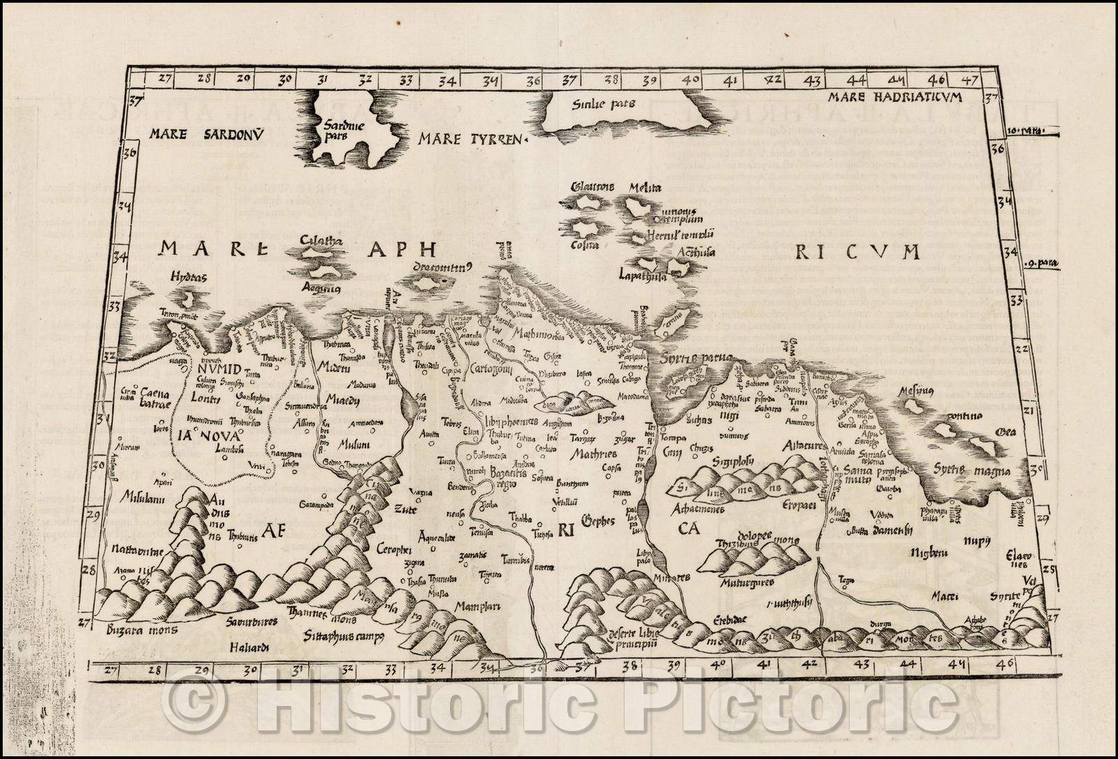 Historic Map - Africa Tabula II Aphricae. Shows Malta and part of Sicily and Sardinia, 1535, Lorenz Fries - Vintage Wall Art