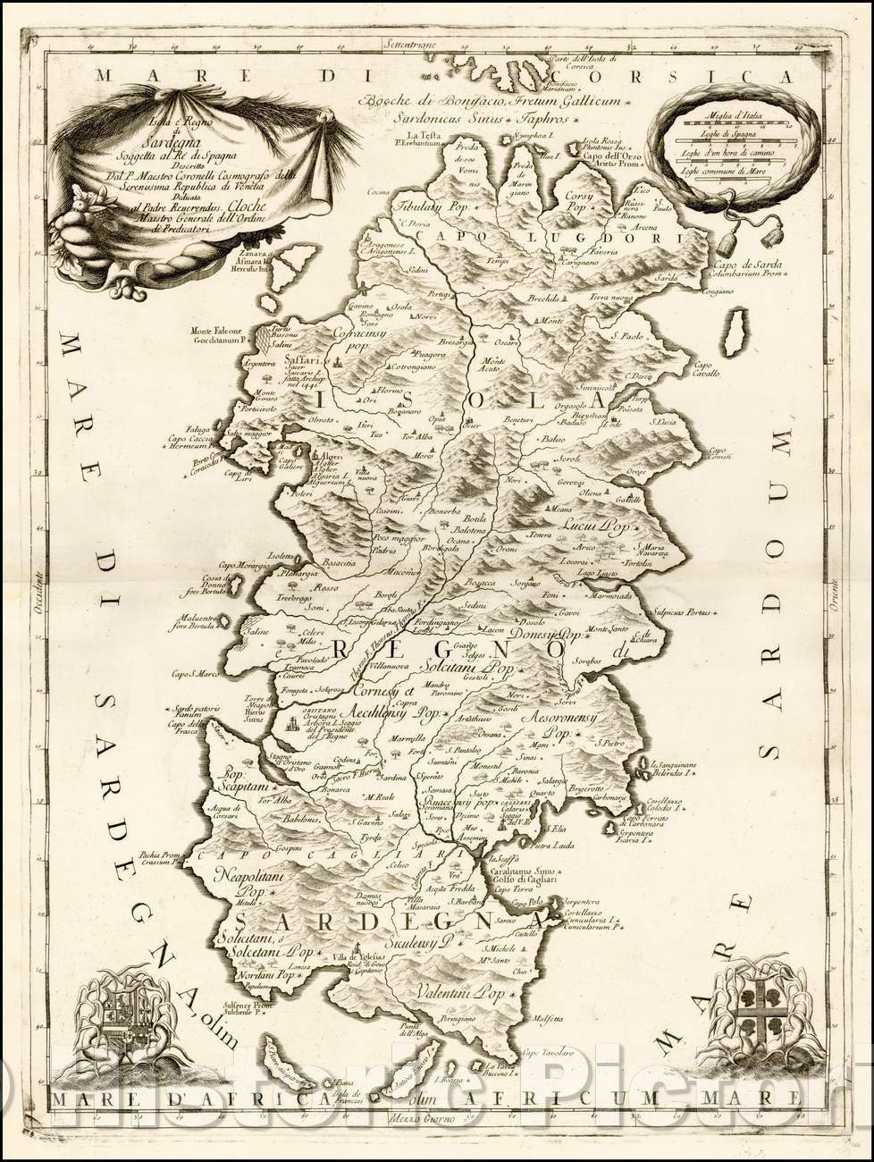 Historic Map - Isola e Regno di Sardegna Sogggetta al Re' di Spagna Descritta :: Island and Kingdom of Sardinia, 1690 - Vintage Wall Art