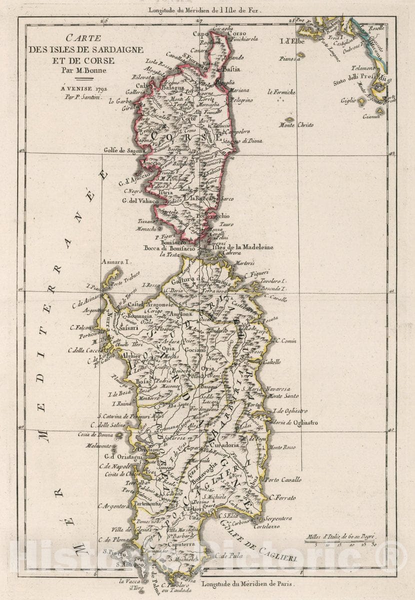 Historic Map : Italy, Sardinia (Italy) Carte des Isles de Sardaigne et de Corse , Vintage Wall Art