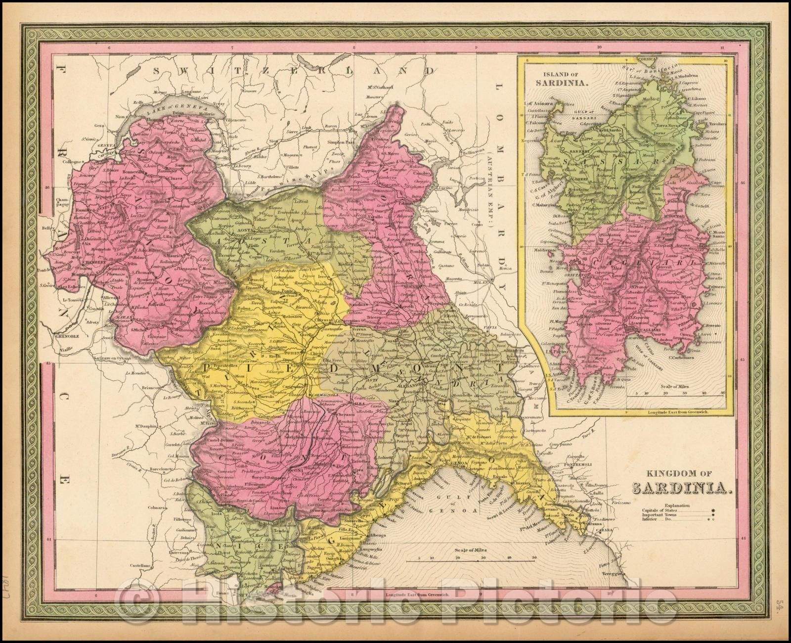Historic Map - Kingdom of Sardinia (w/inset of Island of Sardinia), 1834, Henry Schenk Tanner - Vintage Wall Art