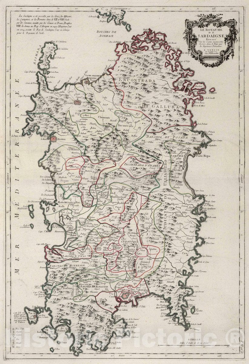 Historic Wall Map : Sardinia (Italy) 1779 26. Le Royaume de Sardaigne. , Vintage Wall Art