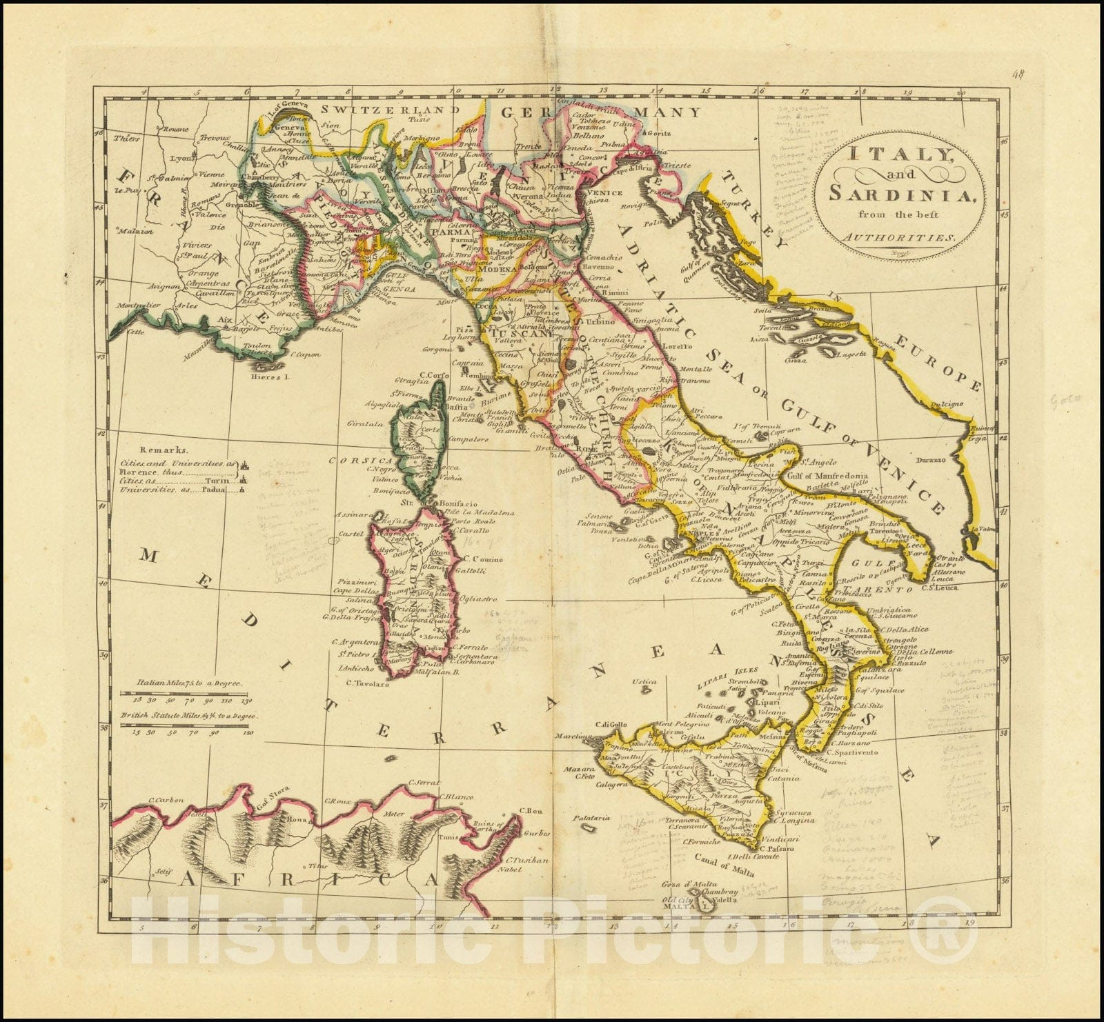 Historic Map : Italy and Sardinia, from the best Authorities, 1814, Vintage Wall Art