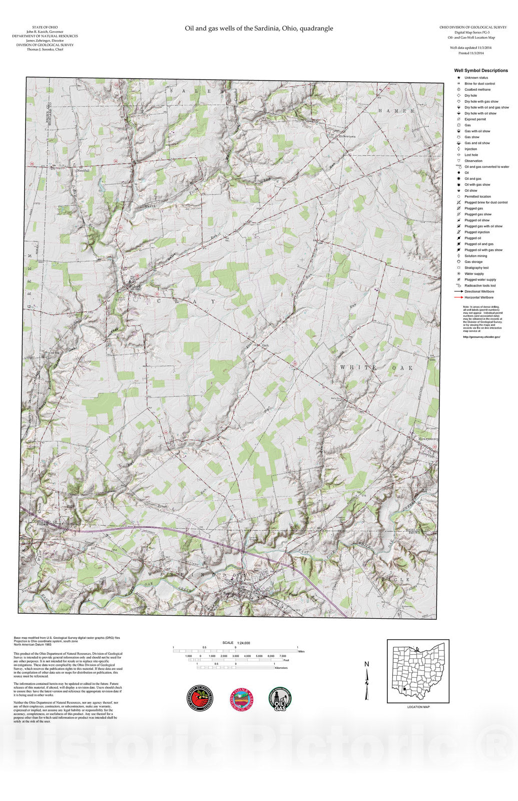 Map : Oil and gas wells of the Sardinia quadrangle [Revised bi-weekly], 2006 Cartography Wall Art :