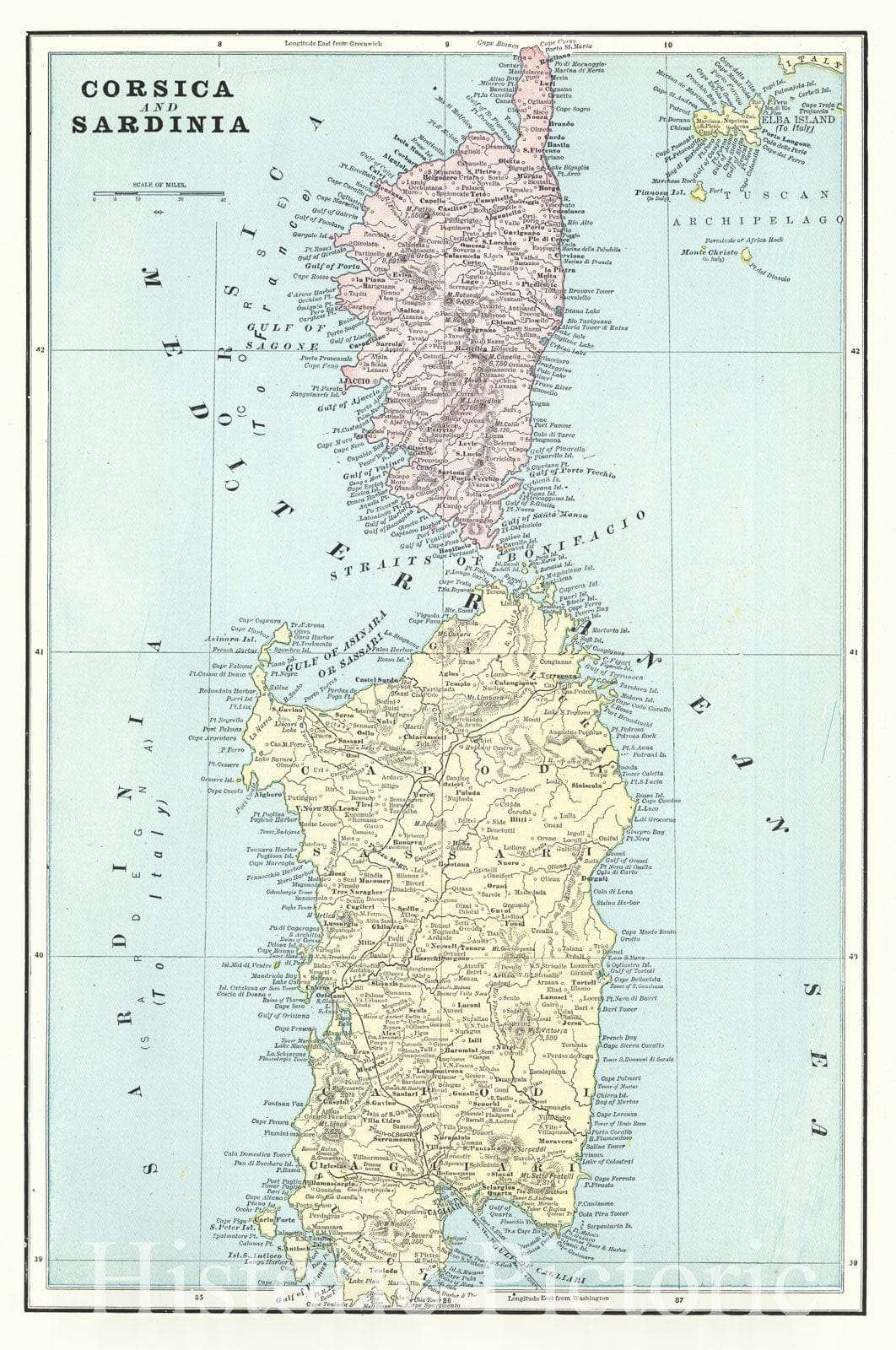 Historic Map : 1895 Corsica and Sardinia : Vintage Wall Art