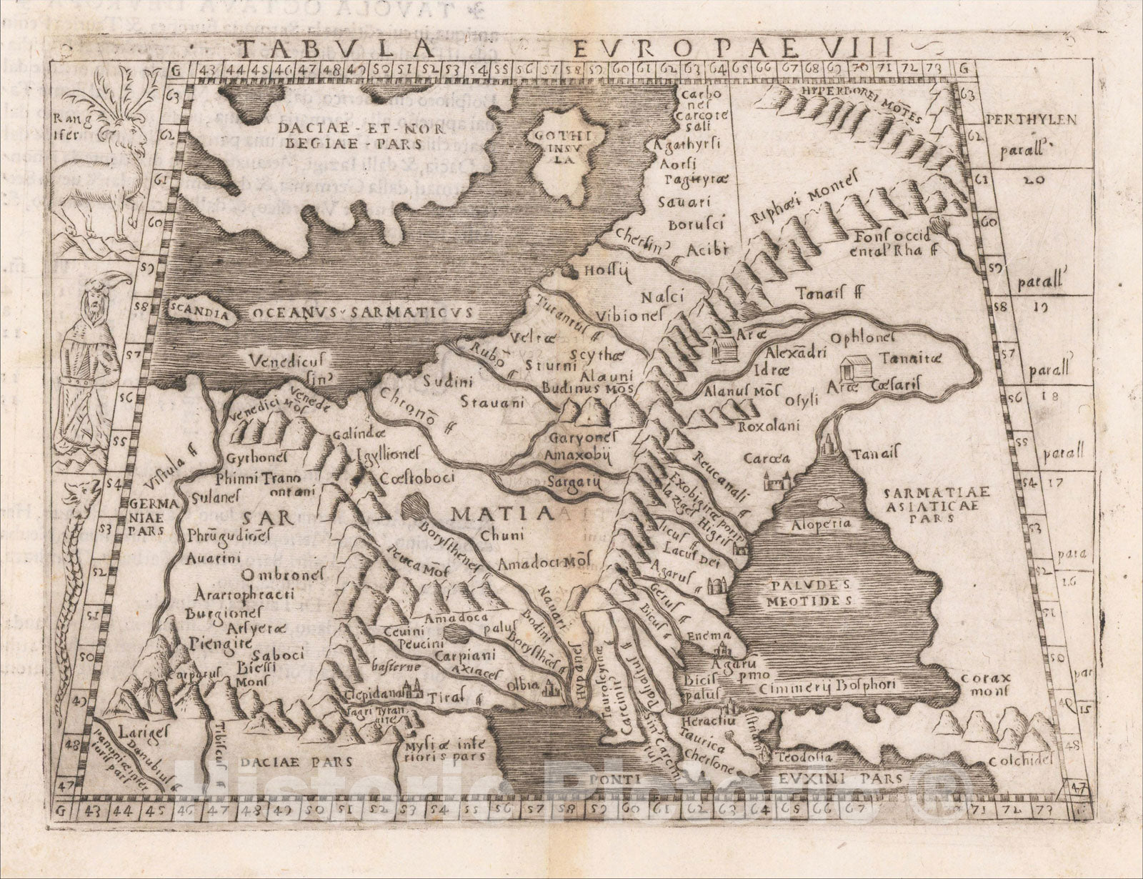 • .Historic Map : Europae Tabula VIII [Russia, Ukraine, Baltic, Scandinavia], 1548, Giacomo Gastaldi, Vintage Wall Art