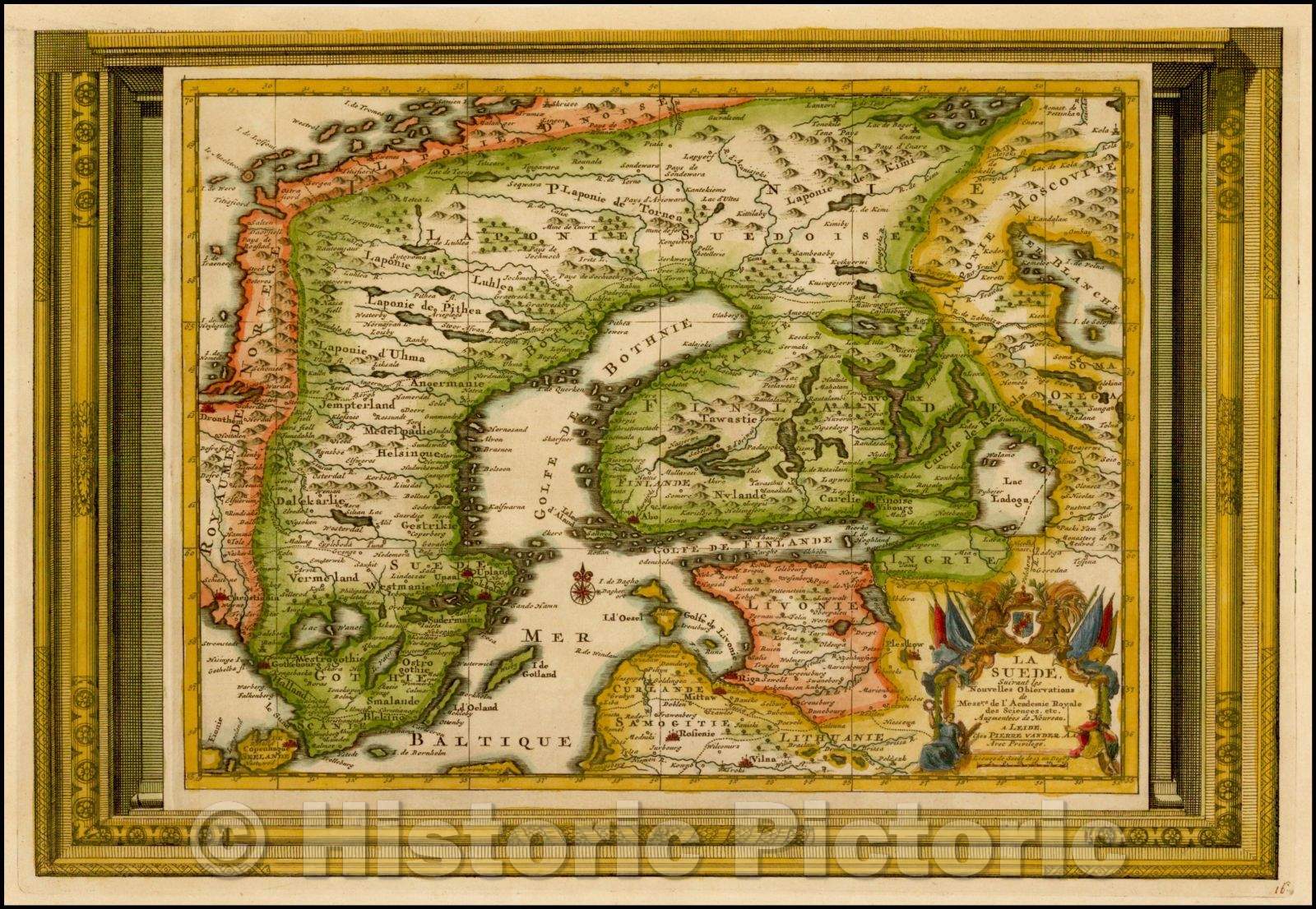 Historic Map - La Suede Suivant les Nouvelles Observations/Vander Aa's Map of Scandinavia and the Baltic Regions, 1700, Pieter van der Aa - Vintage Wall Art