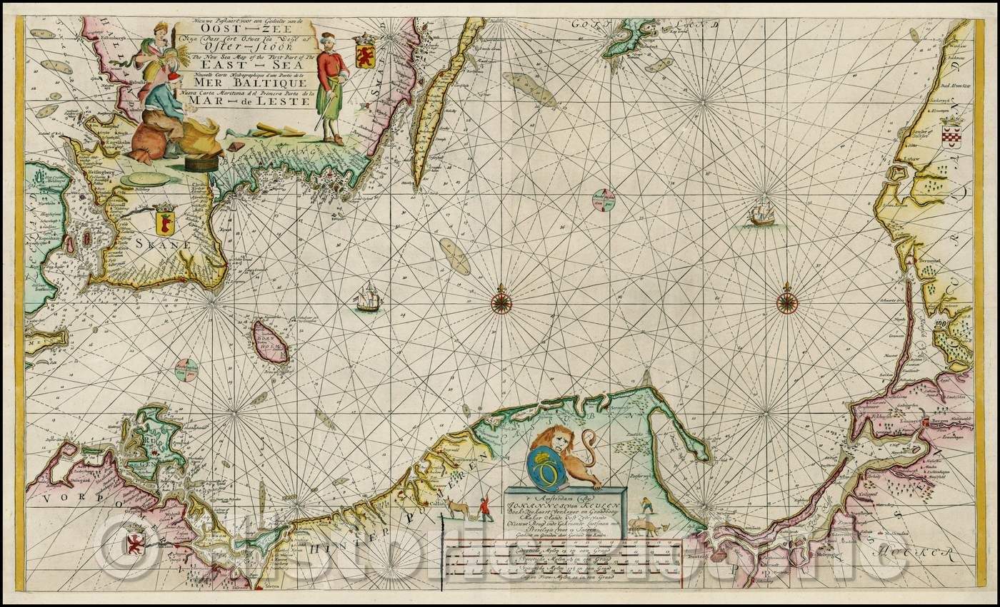Historic Map - Nieuwe Paskaart voor een Gedeelte van de Oos :: Dutch Sea Chart of the Baltic Coast and Southern Scandinavian Coastline, 1728 - Vintage Wall Art