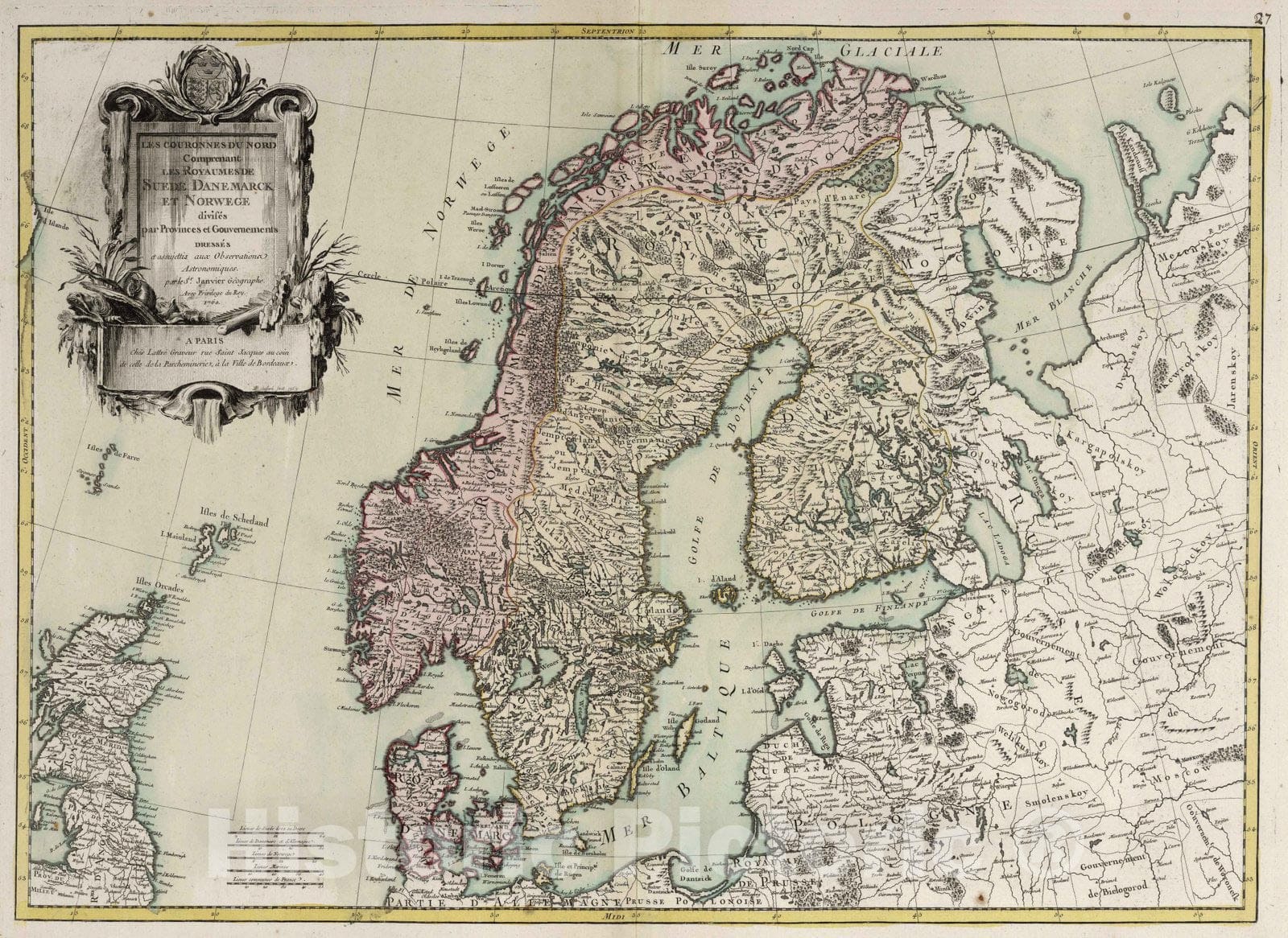 Historic Map : Scandinavia, Europe 1760 Les Couronnes Du Nord Comprenant Les Royaumes De Suede, Danemarck Et Norwege , Vintage Wall Art