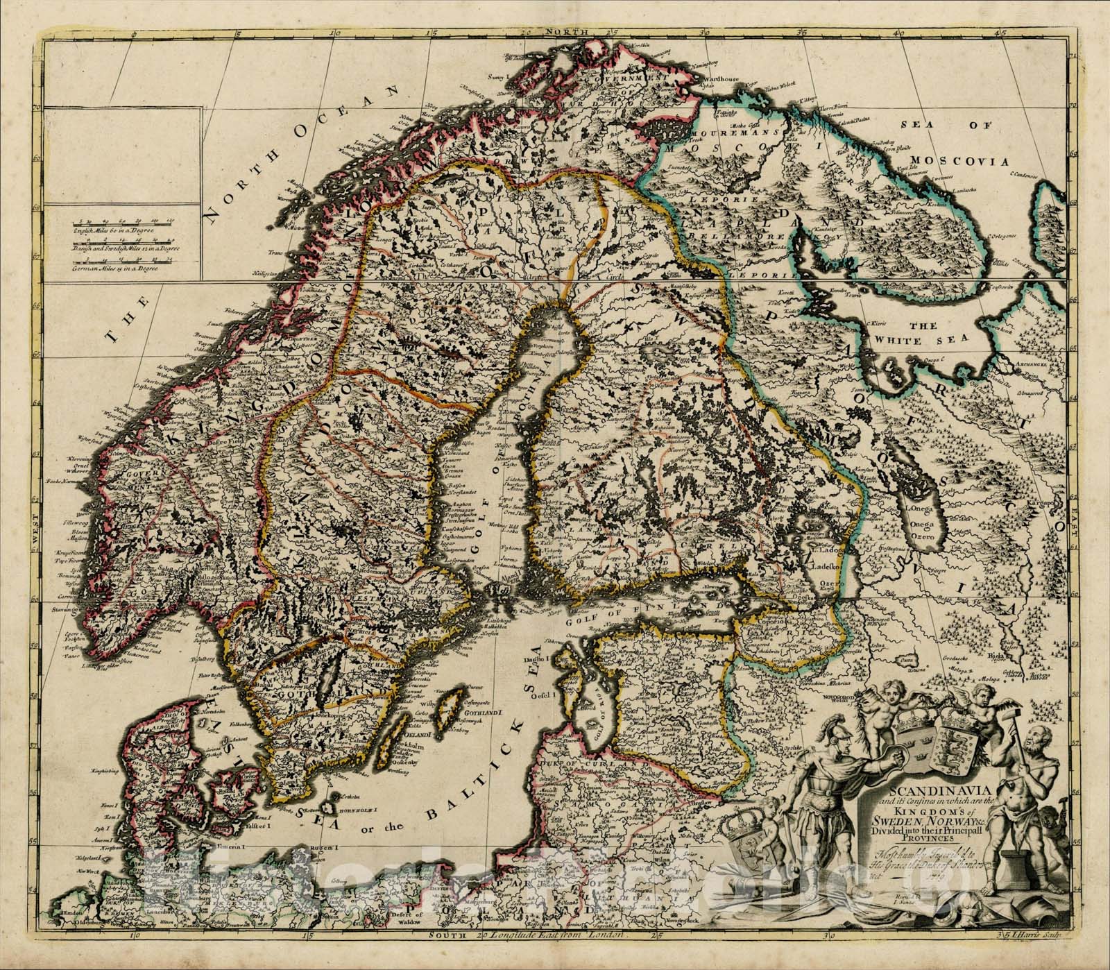 Scandinavia and its Confines in which are the Kingdom's of Sweden, Norway andc. Divided into their Principall Provinces, 1719, 1721, John Senex