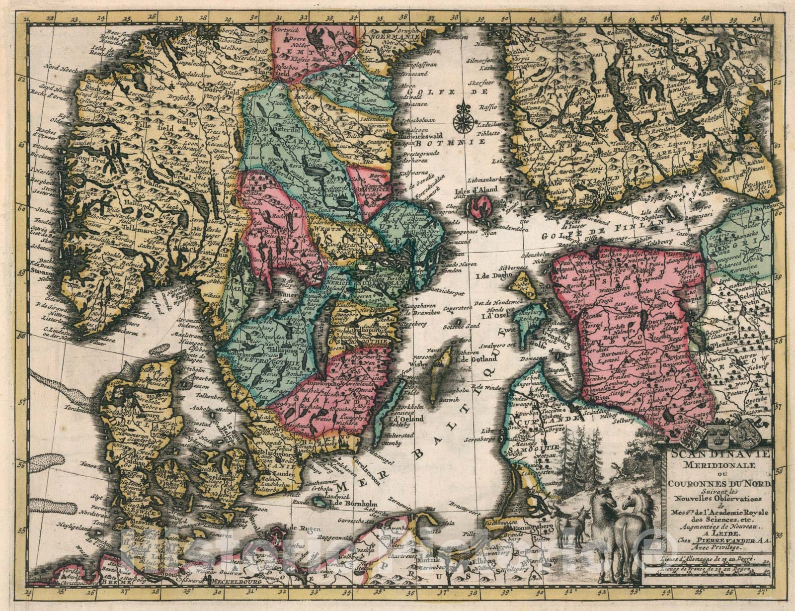 Historic Map - Scandinavie Meridionale ou Couronnes Du Nord Suivant/Southern Part of Scandinavia and the Baltic Sea and contiguous coastlines, 1700 - Vintage Wall Art