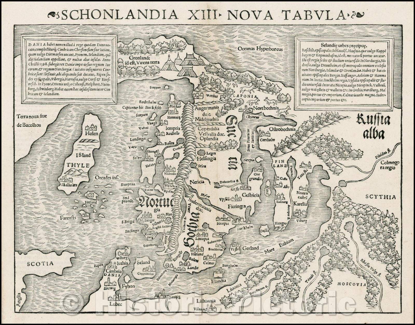 Schonlandia XIII Nova Tabula [1st Map of Scandinavia], 1542, Sebastian M?nster