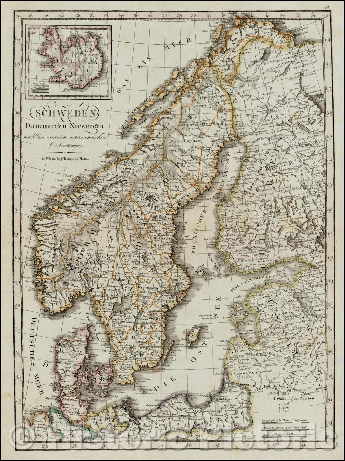 • .Historic Map - Schweden Daenemarck u Norweegen nach den neuesten astronomischen/Regional Map of the Scandinavia, the Baltic and neighboring Regions, 1800 - Vintage Wall Art