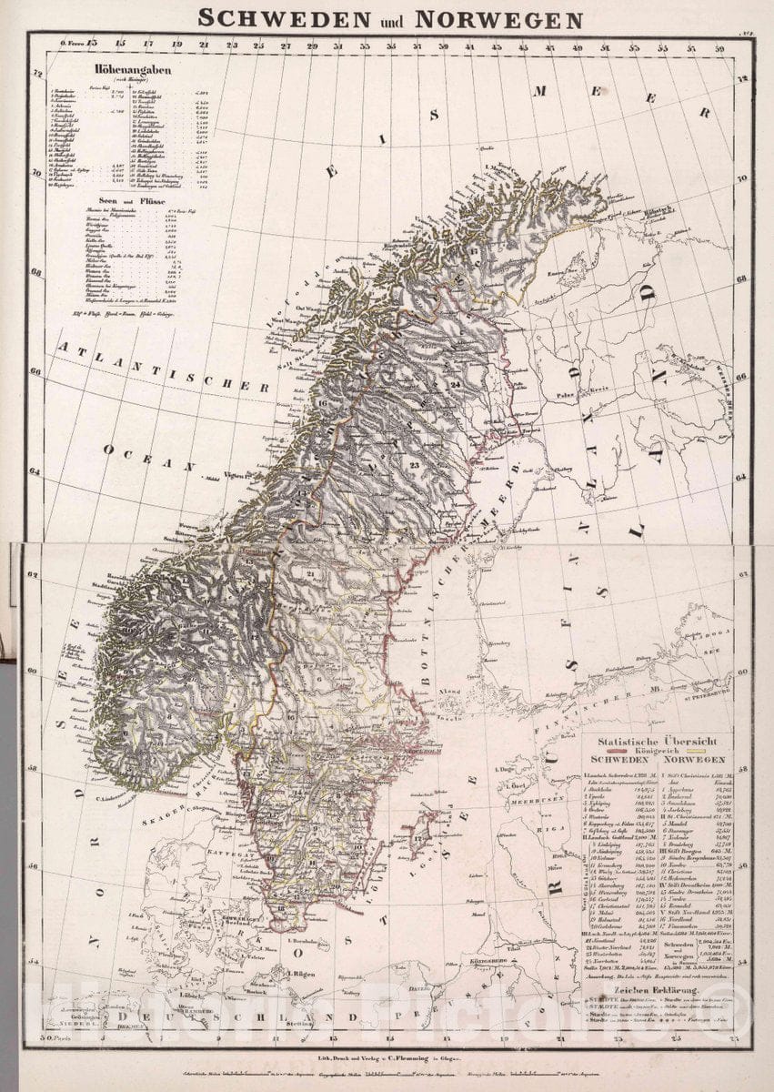 • .Historic Map : Sweden, Scandinavia Schweden und Norwegen, 1847 Atlas v1 , Vintage Wall Art