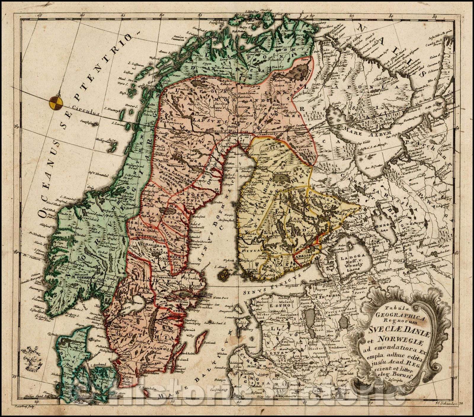 • .Historic Map - Tabula Geographica Regnorum Sueciae Daniae et Norwegiae :: Scandinavia, the Baltic and NW Russia, Leonard Von Euler, 1752, Leonard Von Euler - Vintage Wall Art