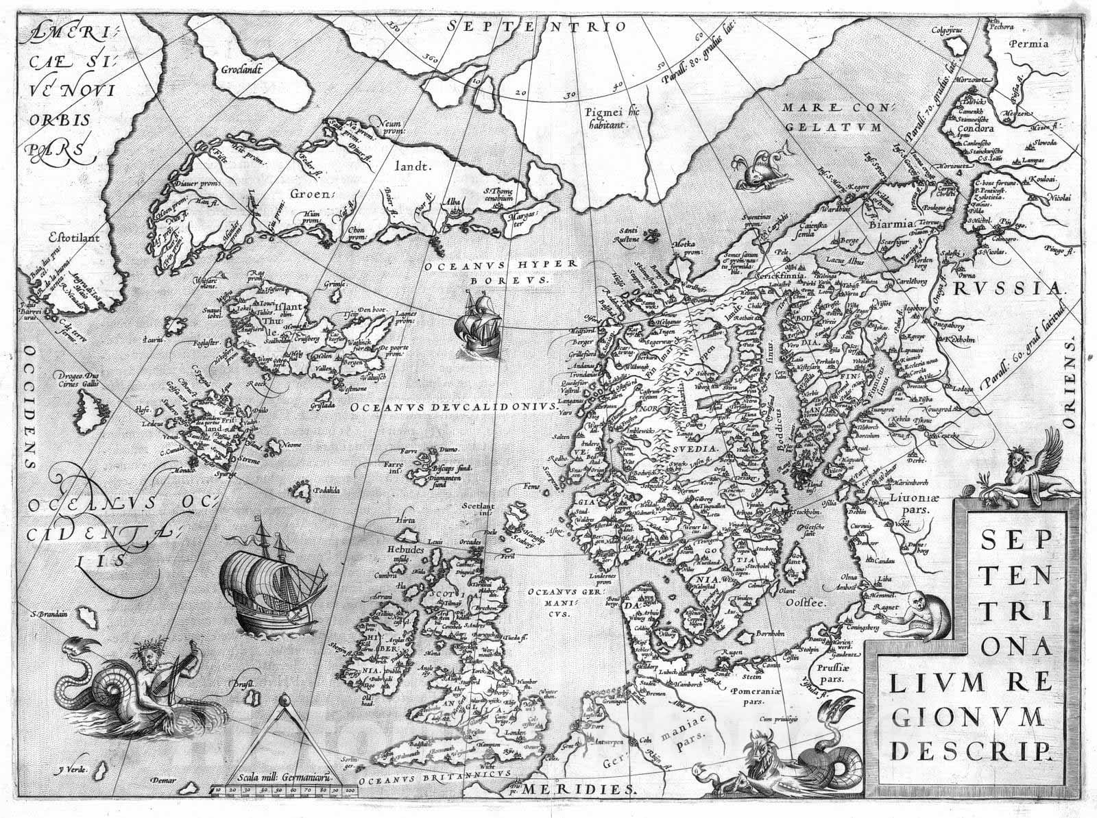 Historic Map : United Kingdom, Scandinavia 1570 (45) Septentrionalium Regionum. , Vintage Wall Art