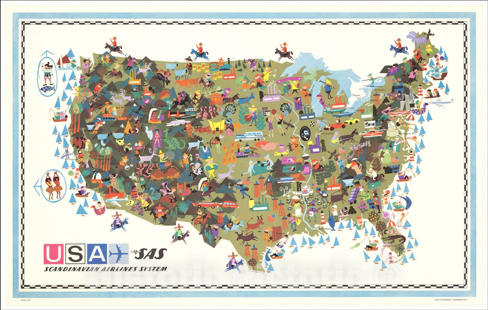Historic Map : USA SAS Scandinavian System, 1961, Scandinavian Airlines Systems, Vintage Wall Art