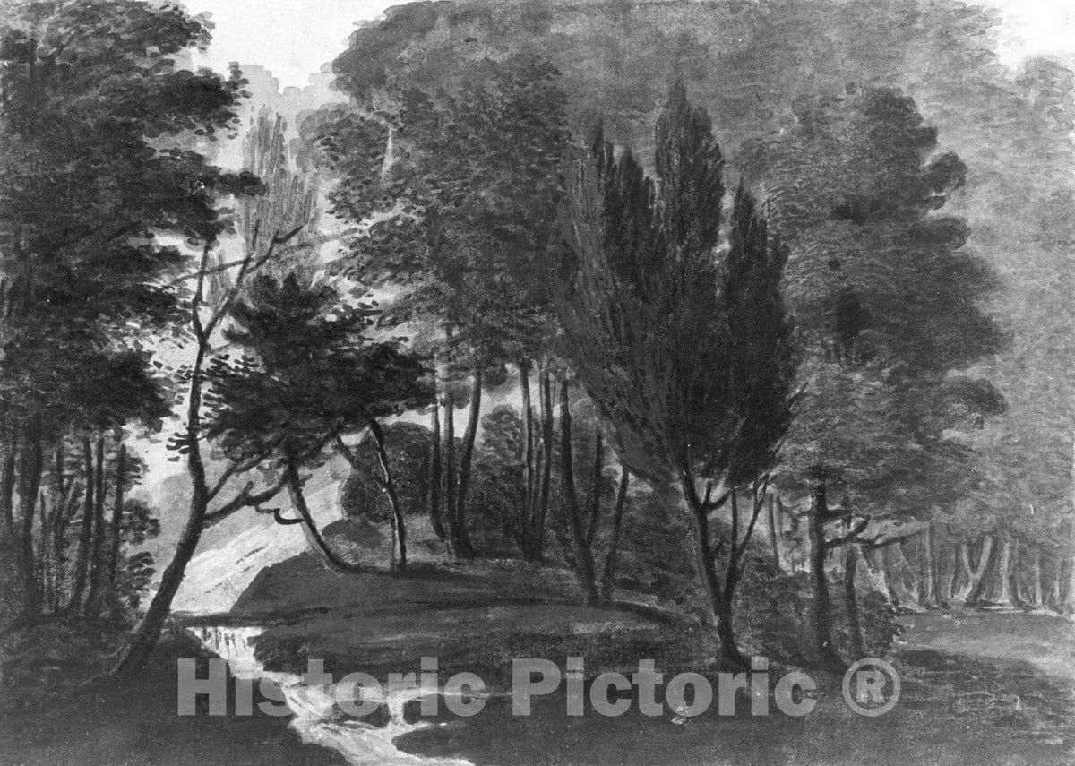 • .Art Print : A Woodland Scene - Artist: Pavel Petrovich Svinin - Created: c1813 : Vintage Wall Art