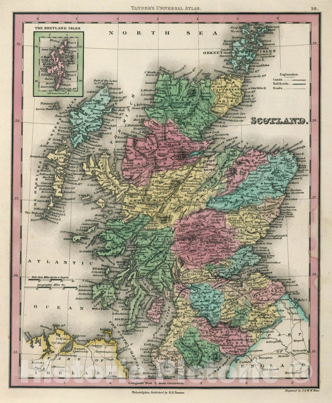 Historic Map : World Atlas Map, Scotland. 1833 - Vintage Wall Art