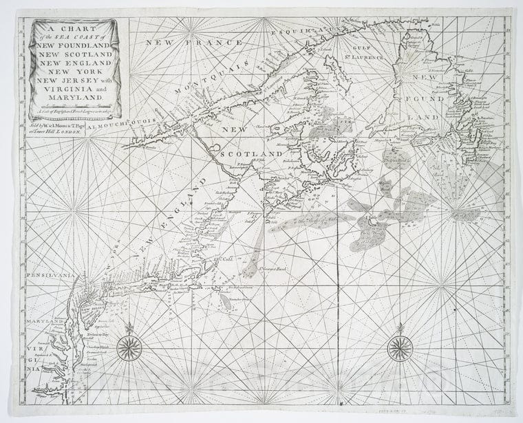 Historic 1748-1770? Map - A Chart Of The Sea Coast Of New Foundland, New Scotland, New Eng - Vintage Wall Art