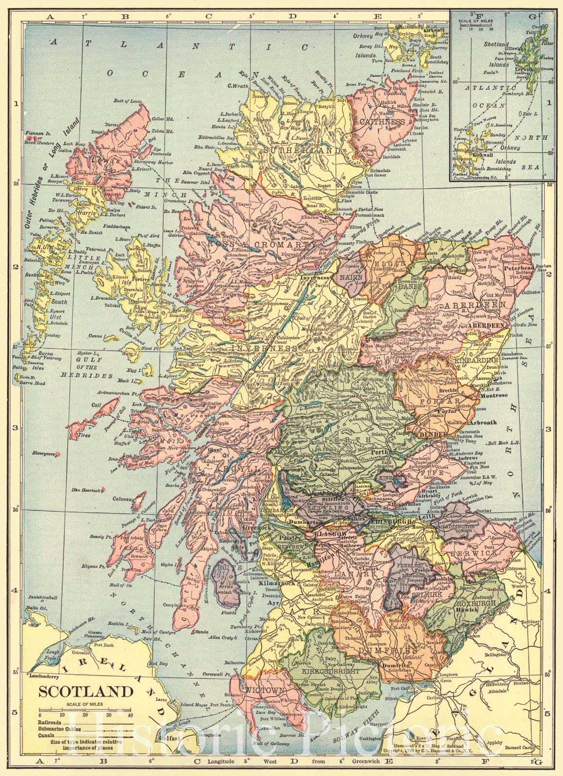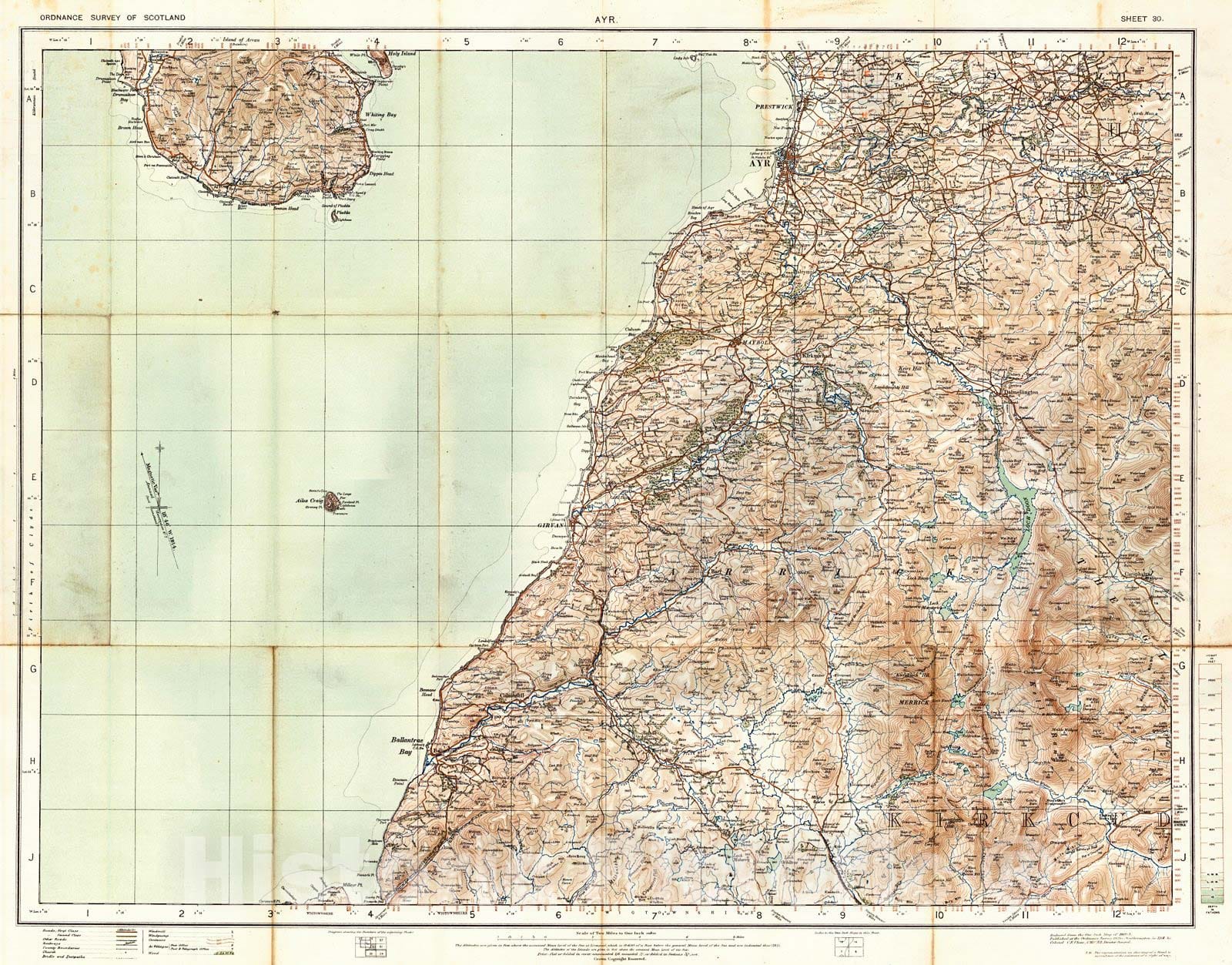 Historic Map : 1914 Ordnance Survey of Scotland, Ayr Sheet 30 : Vintage Wall Art