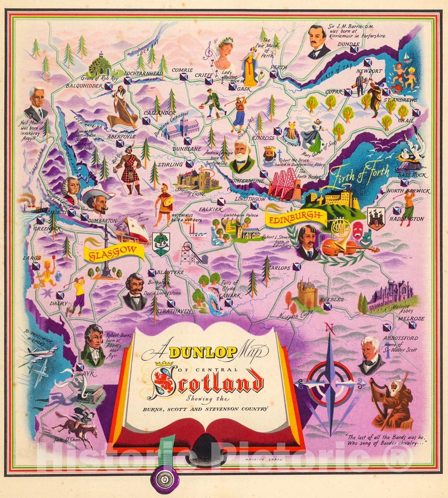 A Dunlop Map of Central Scotland Showing the Burns, Scott and Stevenson County., 1936
