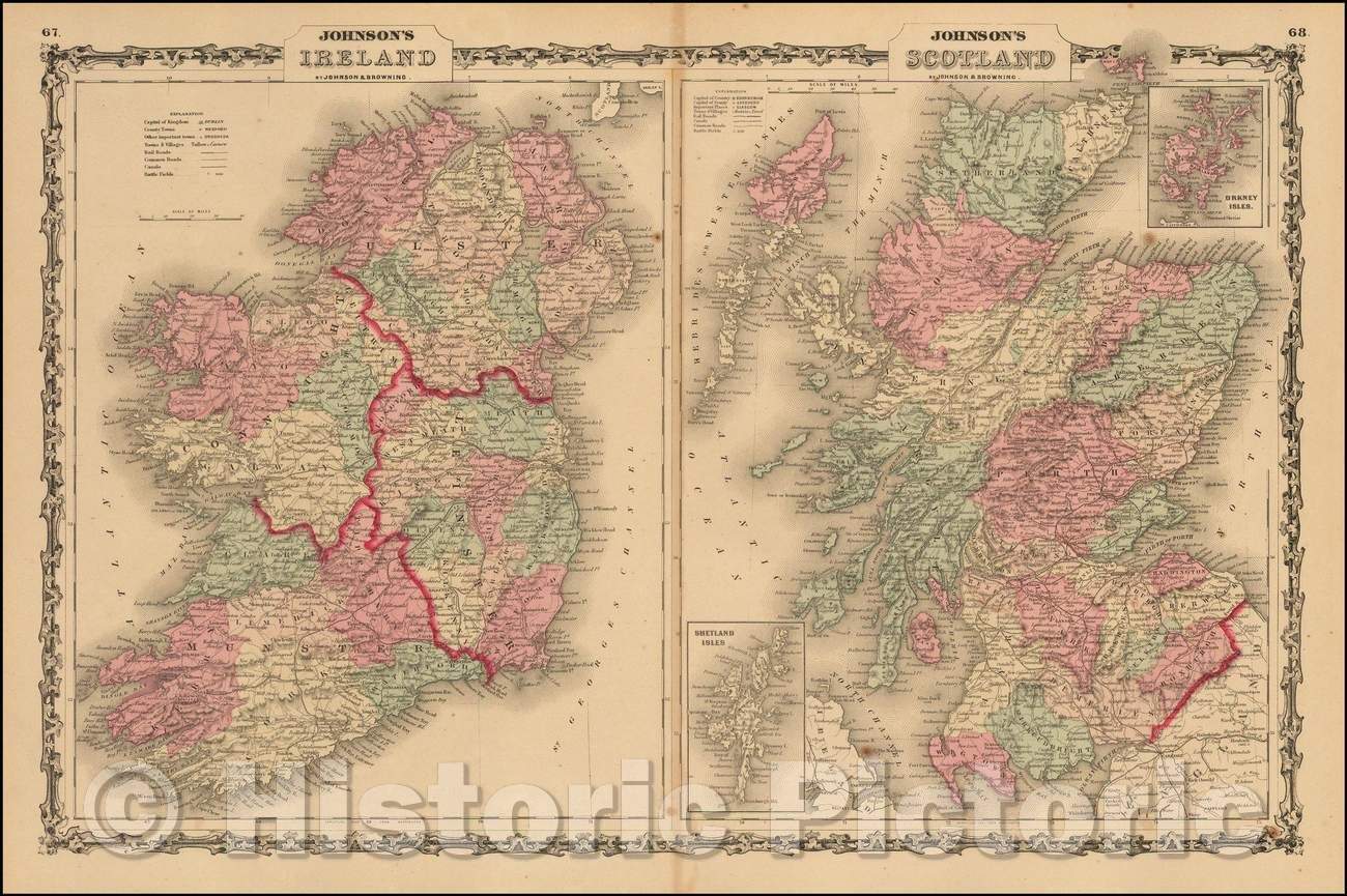 • .Historic Map - Johnson's Ireland [with] Johnson's Scotland, 1861, Alvin Jewett Johnson - Vintage Wall Art