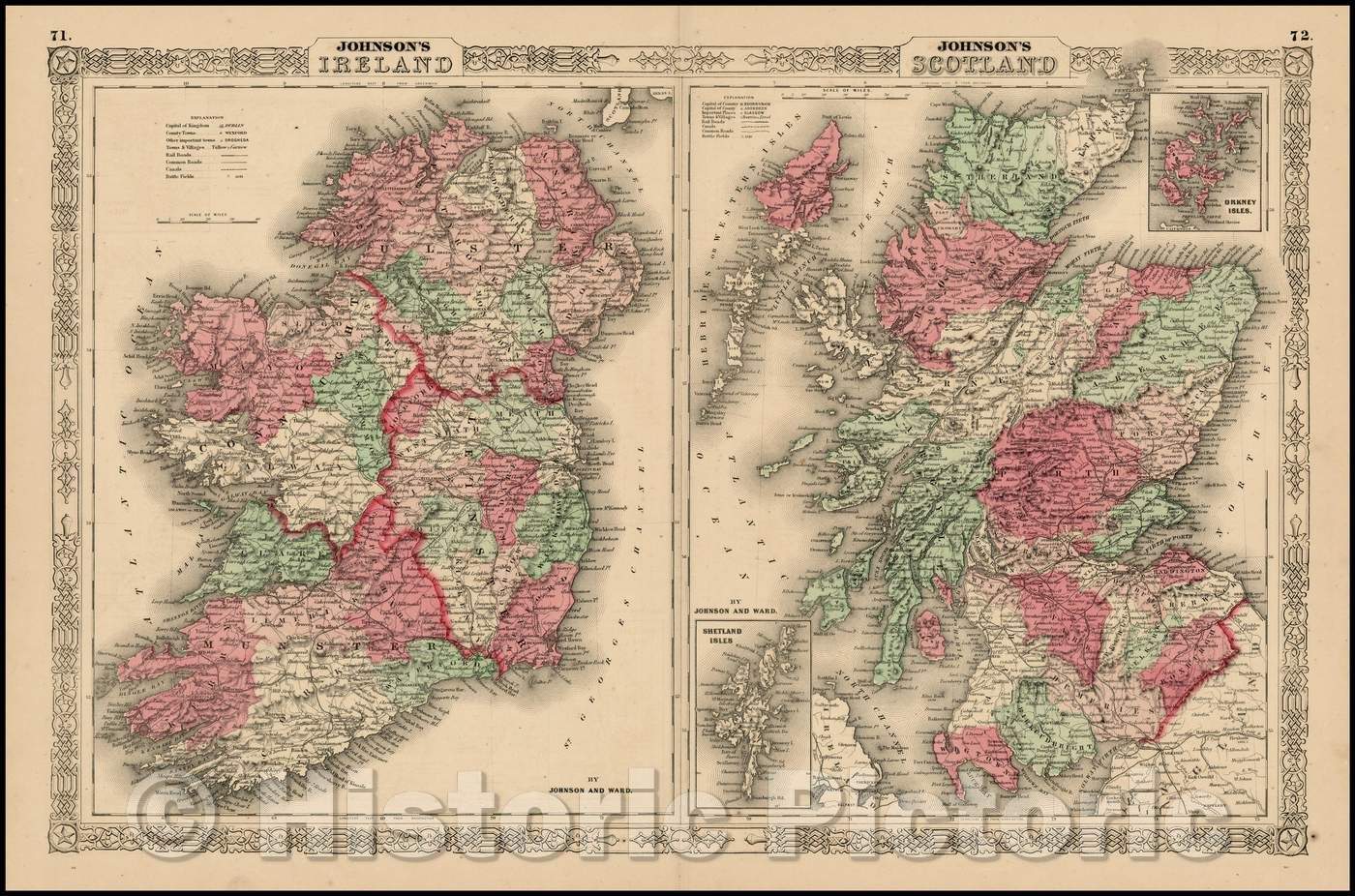 Historic Map - Johnson's Ireland [with] Johnson's Scotland, 1864, Benjamin Ward - Vintage Wall Art
