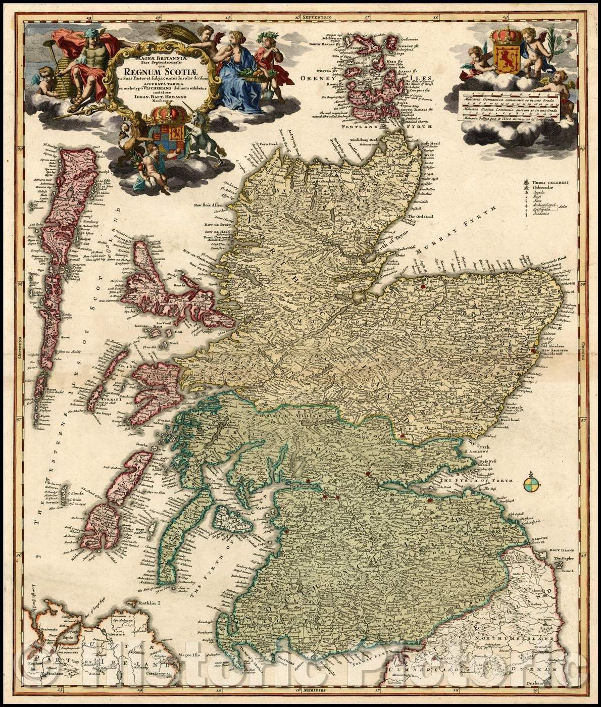 • .Historic Map - Magnae Britanniae Pars Septentrionalis qua Regnum Scotiae/Some of the Kingdom of Great Britain north of Scotland, 1710, Johann Baptist Homann - Vintage Wall Art