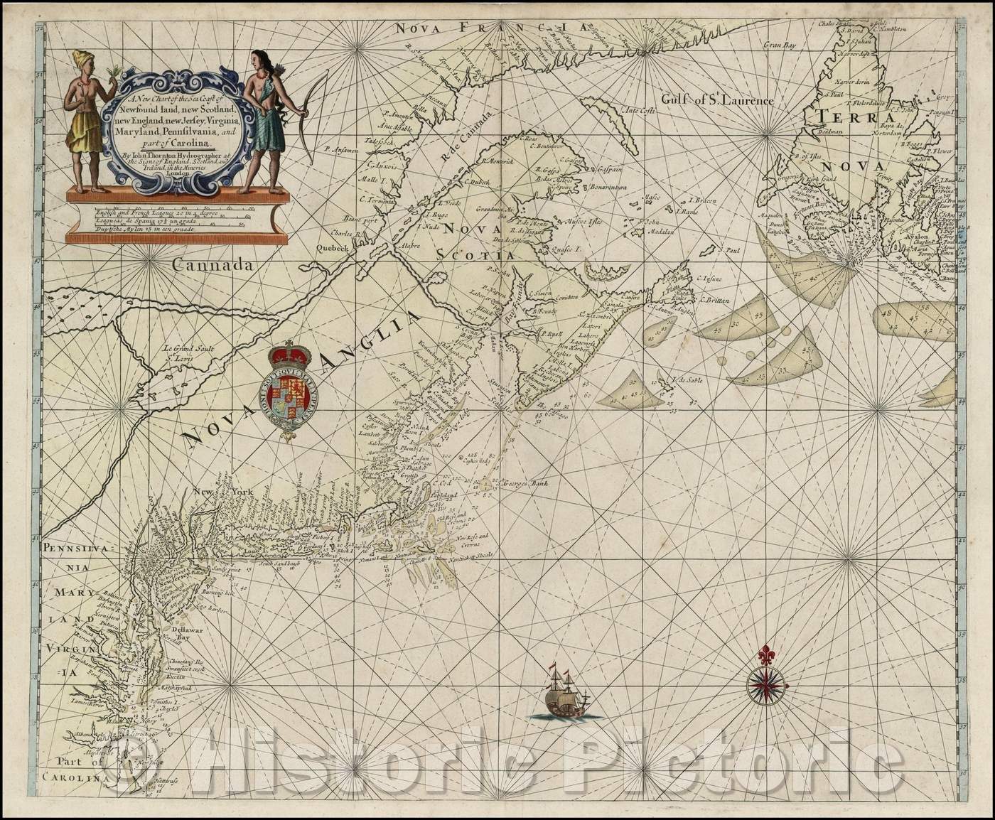 Historic Map - A New Chart of the Sea Coast of Newfound land, new Scotland, new England, new Jersey, Virginia, Maryland, Pennsylvania, and part of Carolina, 1685 v1