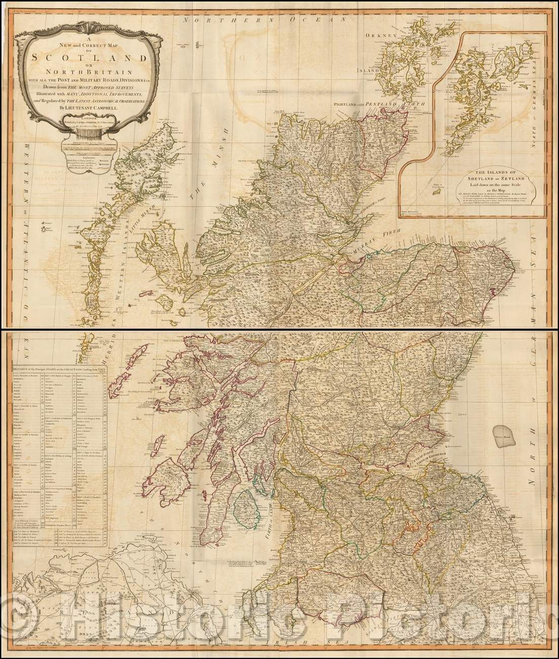 • Historic Map - A New and Correct Map of Scotland or North Britain with all the Post and Military Roads, Divisons &ca, 1794, Richard Holmes Laurie v2
