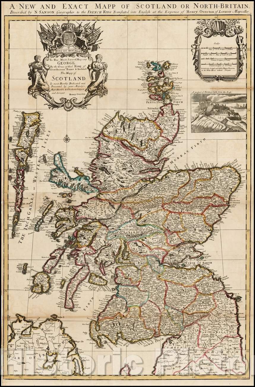 Historic Map - A New and Exact Mapp of Scotland or North=Britain, 1715, Henry Overton - Vintage Wall Art