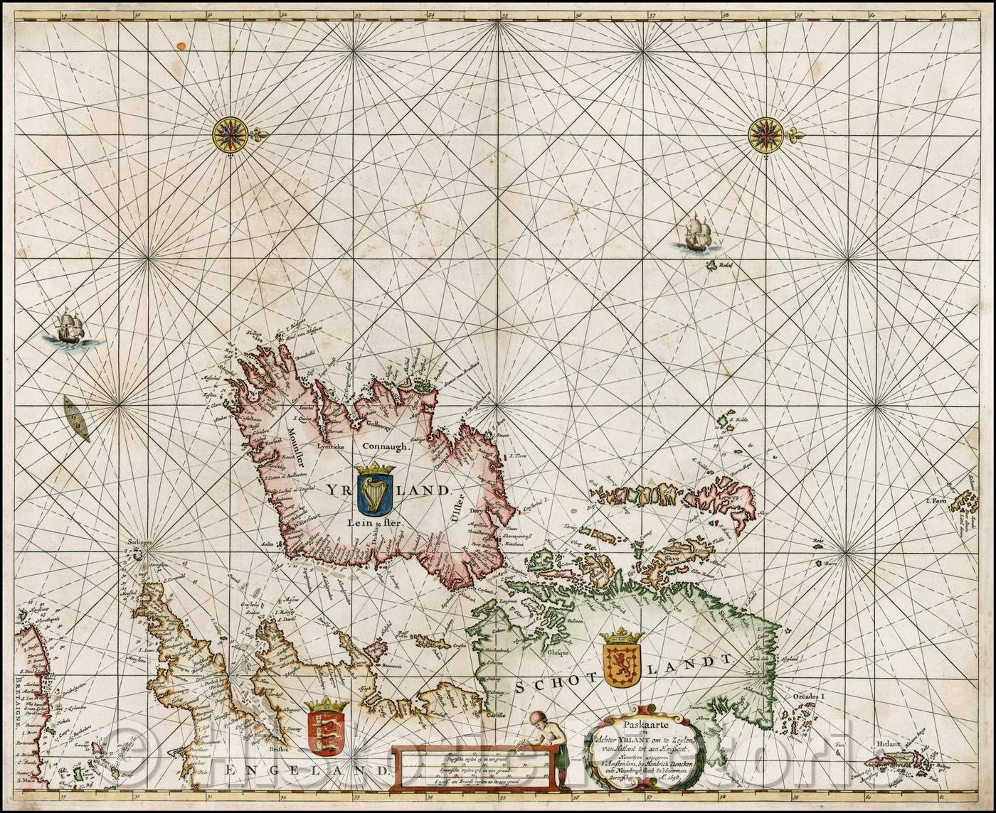 Historic Map - Paskaarte om Achter Yrlant om te Zeylen, von Hitlant tot aen Heyssant/Doncker's Chart of the coasts of Ireland and Scotland, 1658 - Vintage Wall Art