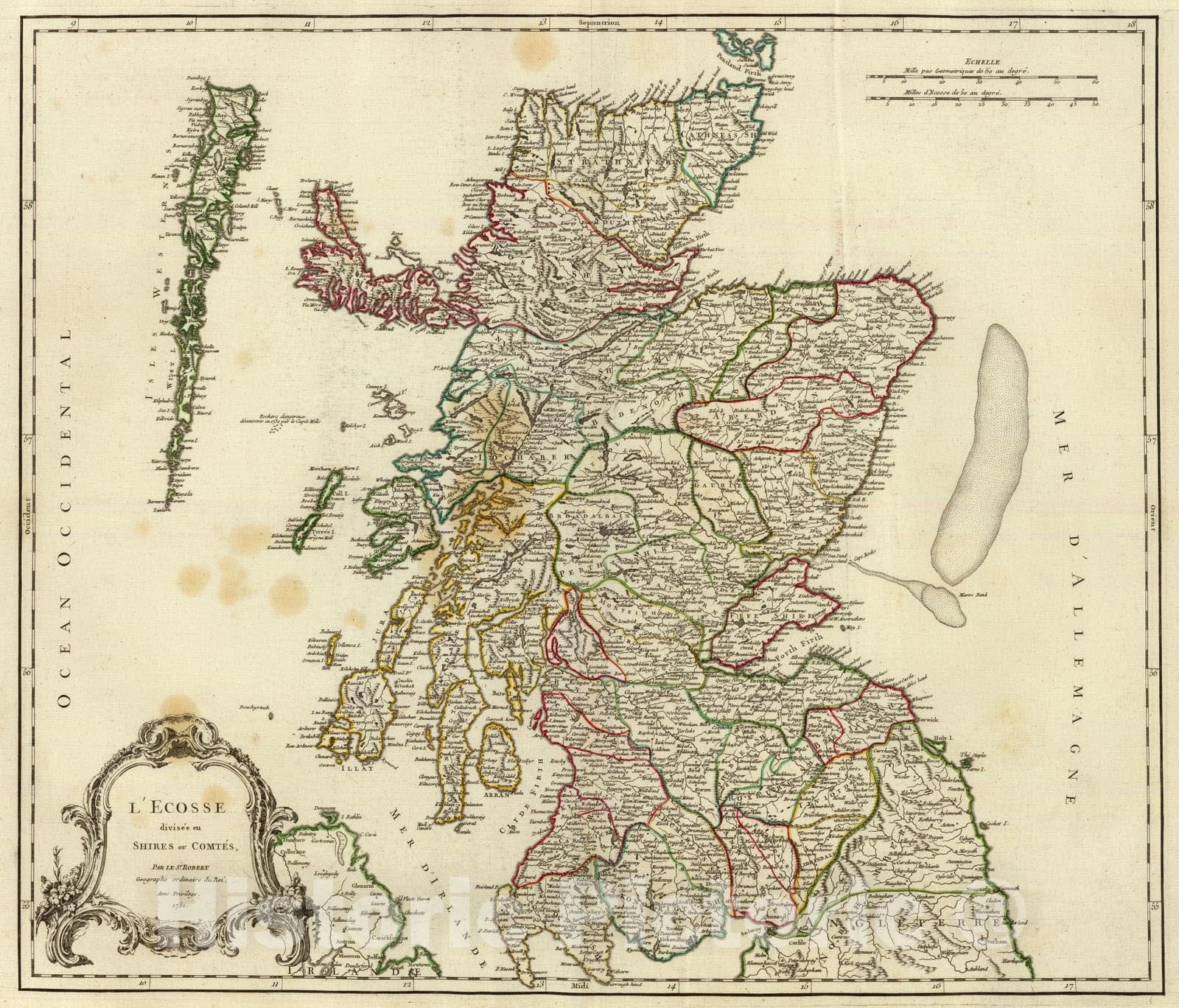 Scotland, 1751 L'Ecosse divisee en Shires ou Comtes. , Vintage Wall Art