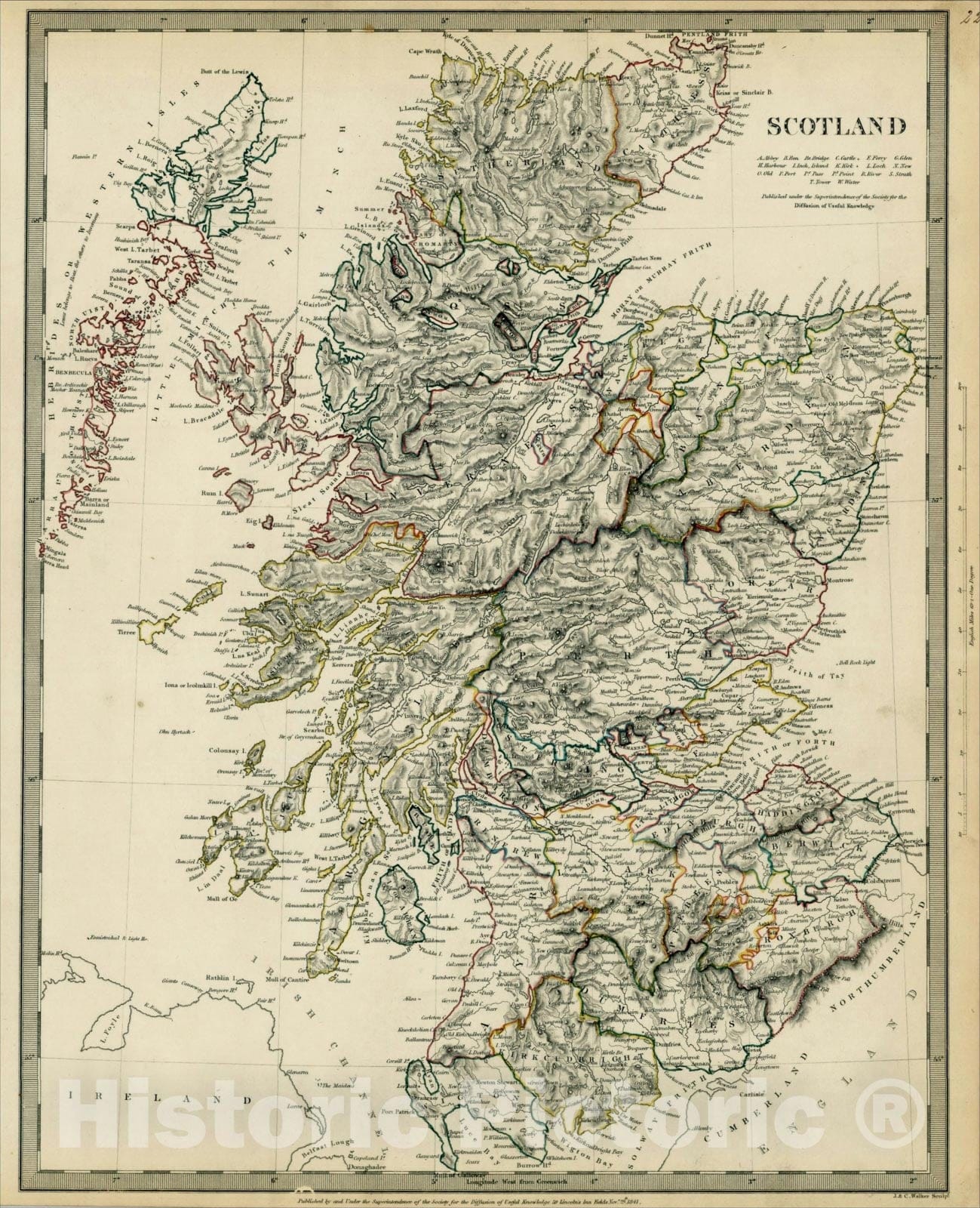 Historic Map : Scotland, 1841, Society for the Diffusion of Useful Knowledge, Vintage Wall Art