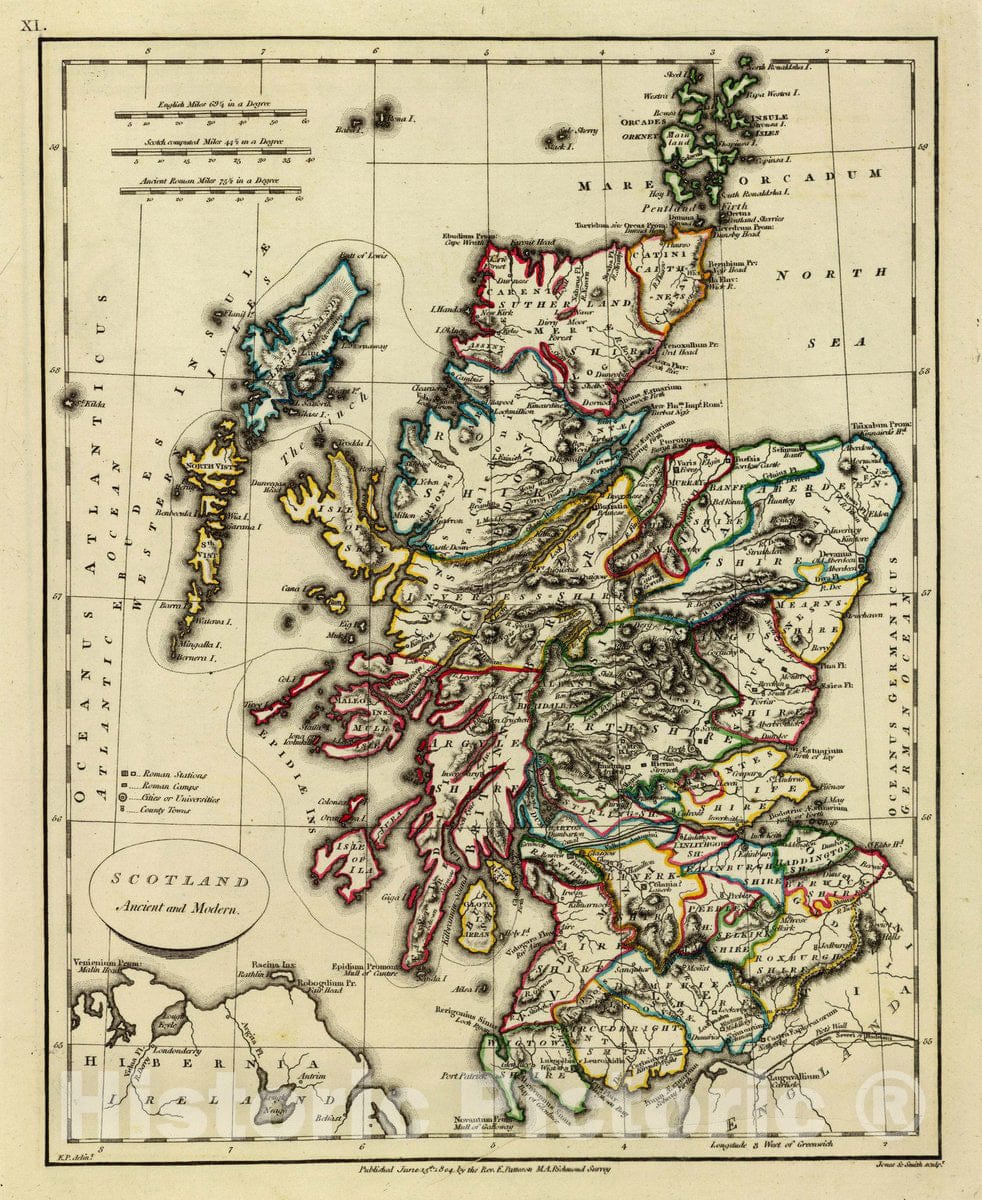 Historic Map : Scotland ancient and modern. E.P. delint. Jones & Smith, sculpt. Published June 15th 1804 by the Rev. E. Patteson, M.A, Richmond, Surrey, 1804 AtlasVintage Wall Art