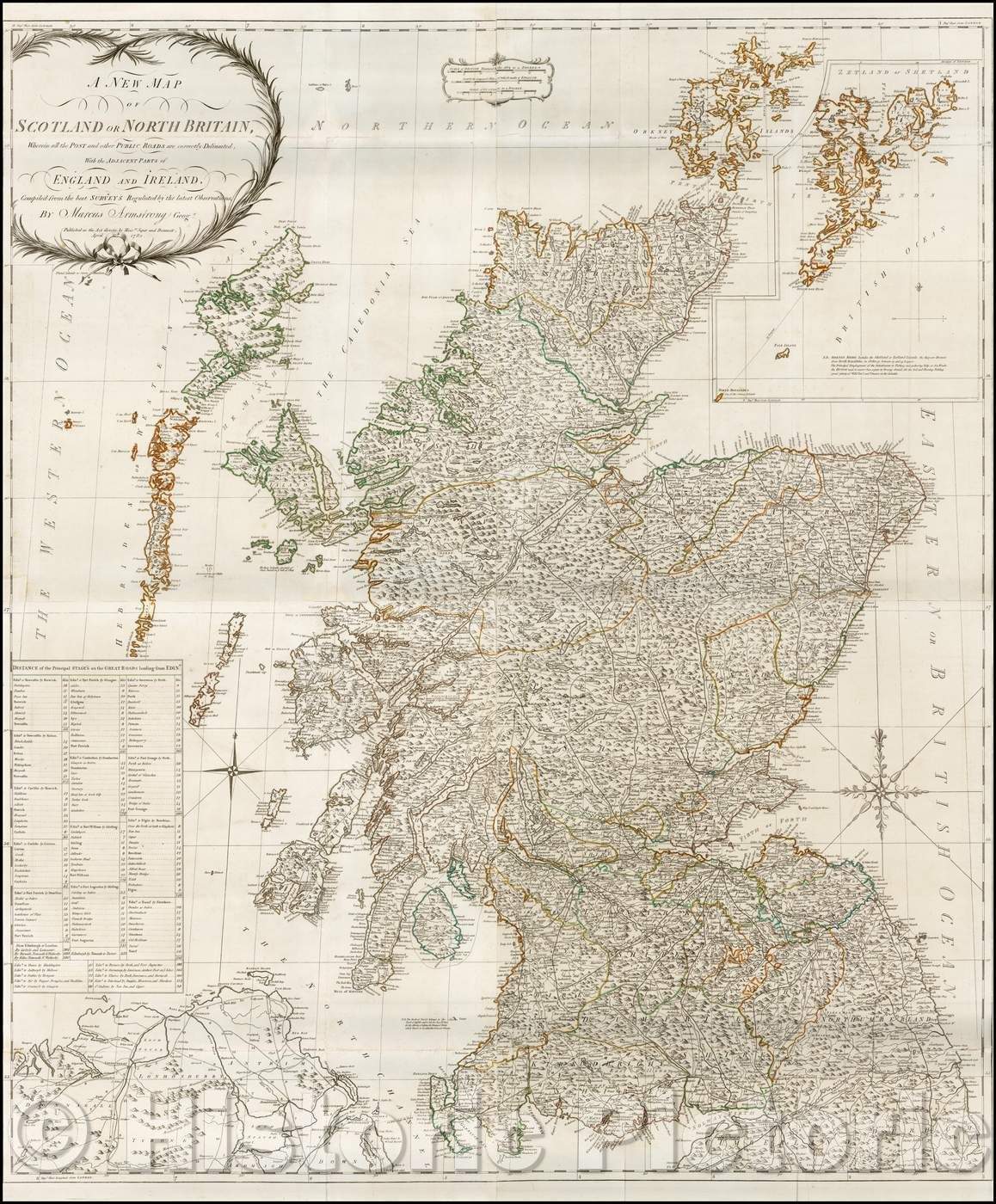Historic Map - Scotland or North Britain, Wherein all the Post and other Public Roads are correctly Delineated, 1782, Robert Sayer - Vintage Wall Art