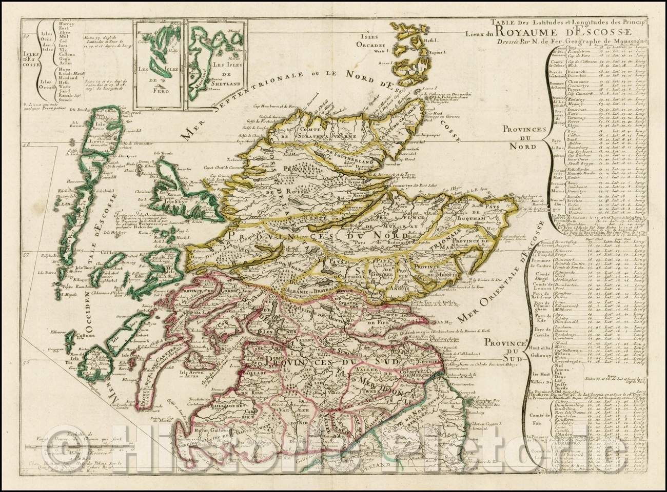 Historic Map - (Scotland) Royaume D'Ecosse/Map of Scotland, including a table showing the various divisions of the country, 1706, Nicolas de Fer - Vintage Wall Art