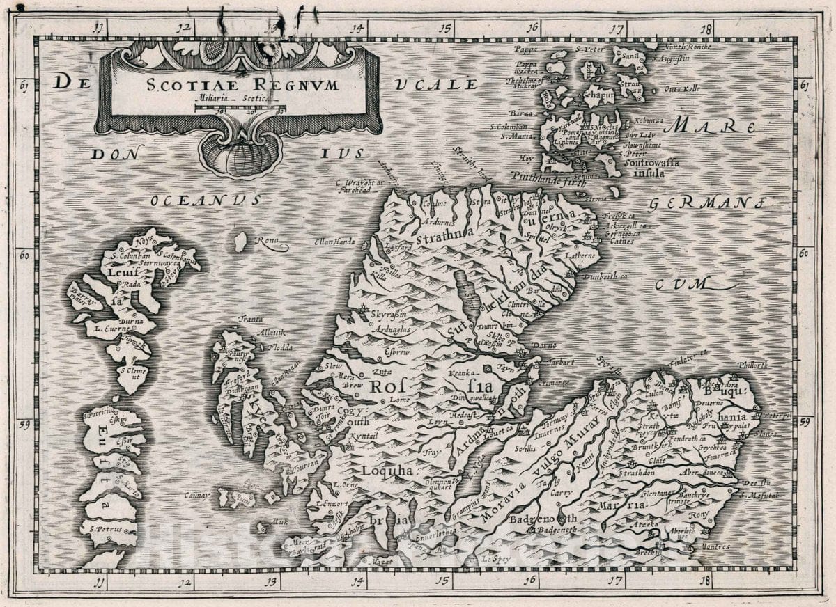Historic Map : Scotland, Scotiae Regnum. Atlas sive Cosmographicae Meditationes de Fabrica Mundi et fabricati Figura, 1636 Atlas , Vintage Wall Art