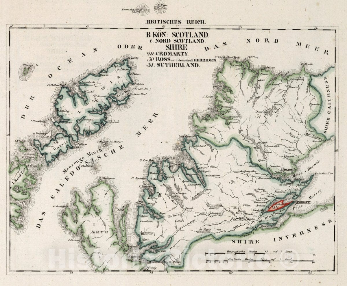 Britisches Reich. B. Kon: Scotland. c. Nord Scotland. Shire: 29-31... (to accompany) Atlas von Europa nebst den Kolonien : Funfzehnte Lieferung. Leipzig bei Georg Joachim Goschen 1830. | Atlas von Europa nebst den Kolonien : fur Geschaftsmanner, Zeitungsleser und Besitzer des Conversations-Lexicons in einer Folge von Charten und einem alphabetisch eingerichteten Texte : bearbeitet von W. E. A. v. Schlieben ... Leipzig bei Georg Joachim Goschen 1825. O. Hermann, Lith. | Publisher:Georg Joachim Goschen